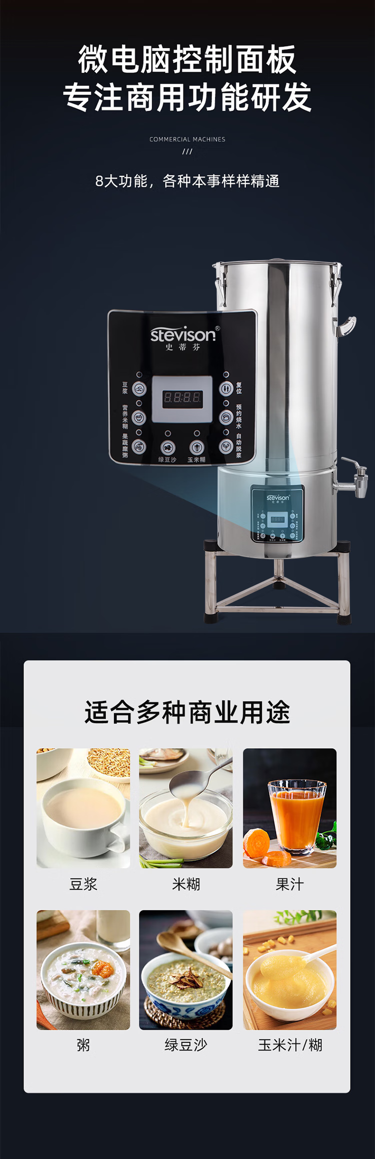 Stevison(史蒂芬) SDF-DJ250B-25L 商用豆浆机25L 商用米糊豆浆机 内置过滤网,全钢机型 容量15-25L 220V (配一个三角架) 不锈钢