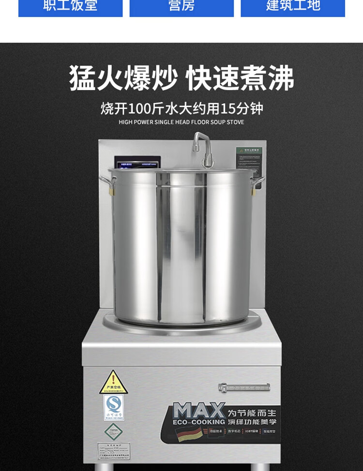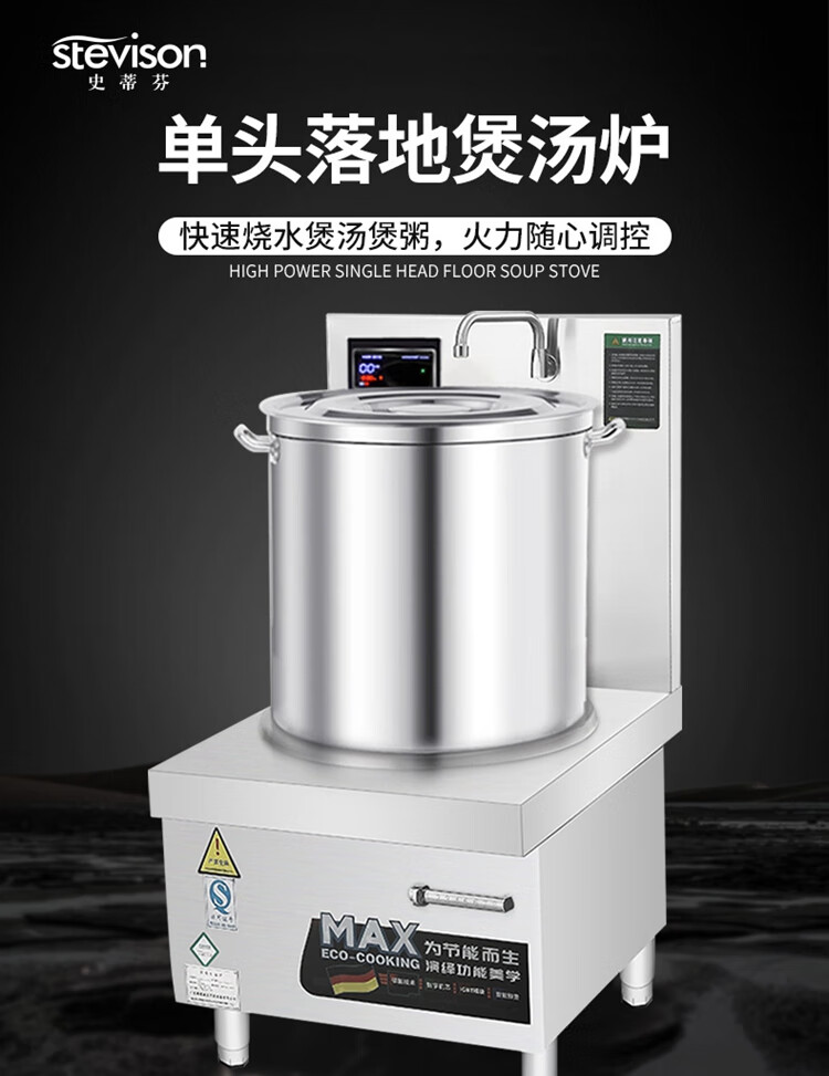 Stevison(史蒂芬) SDF-WS-TG8A 单头高背矮汤炉 电压:380V 功率:8kw 配1个500mm汤桶 304不锈钢