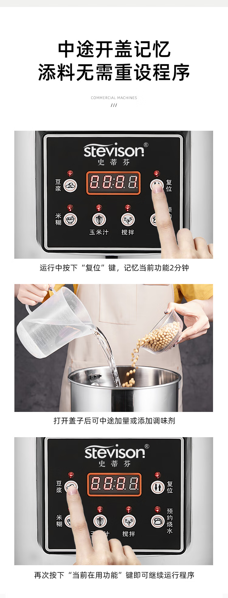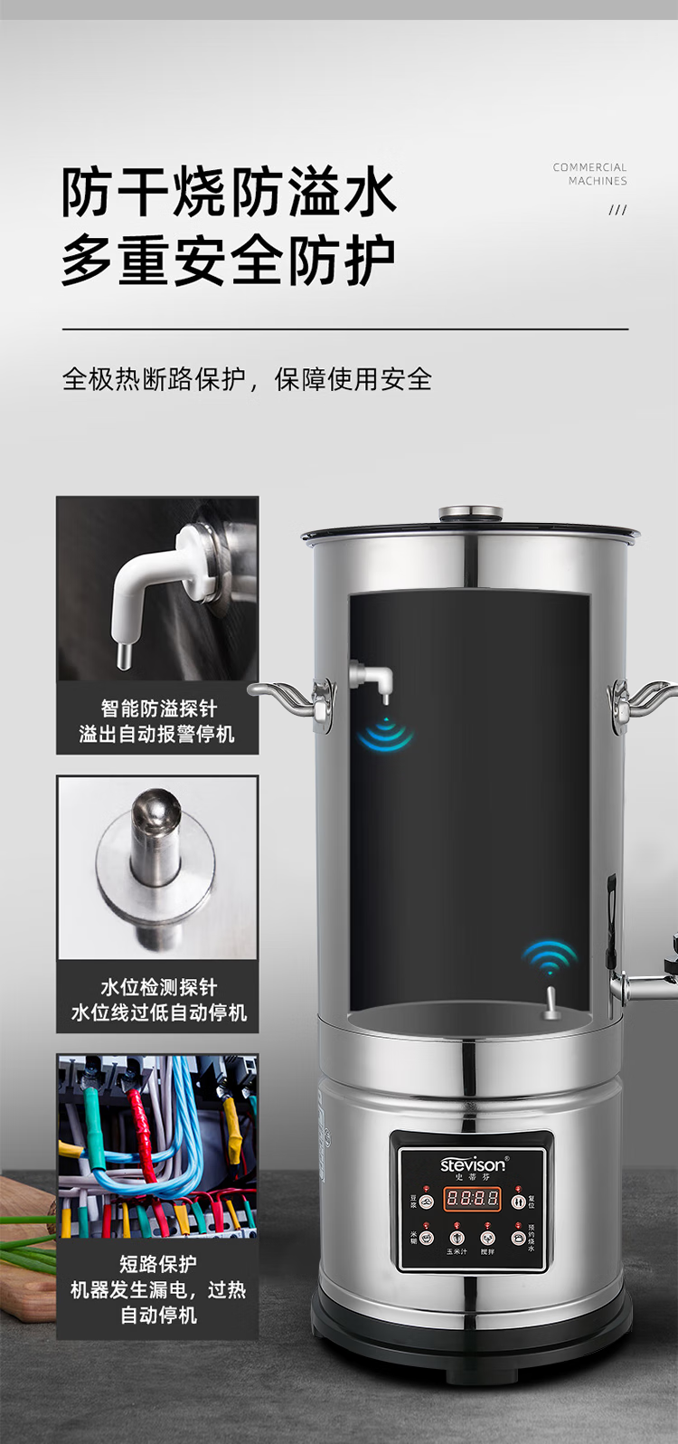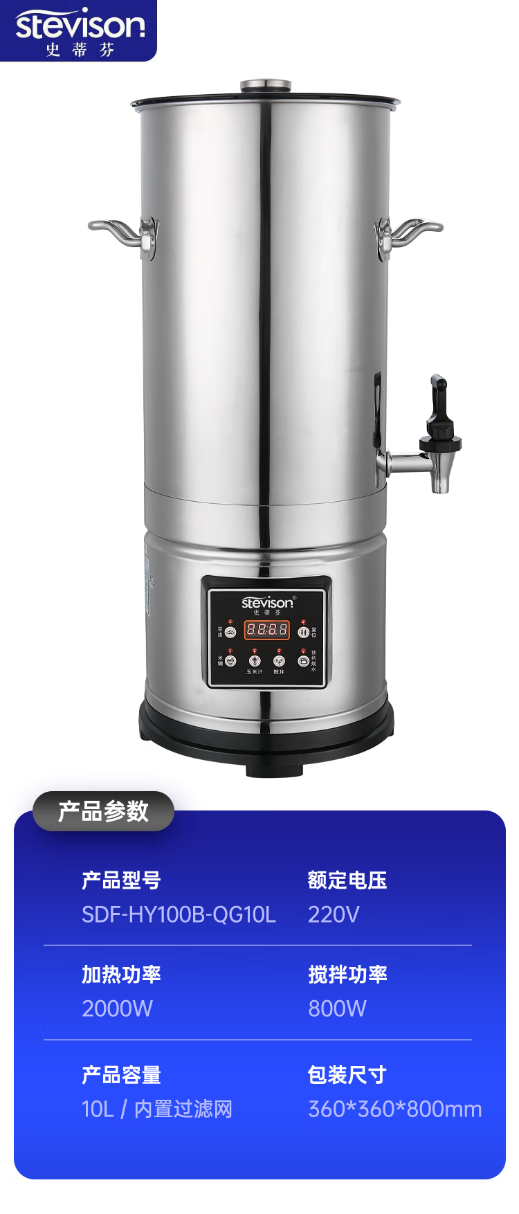 Stevison(史蒂芬) SDF-HY100B-QG10L 商用豆浆机10L 内置过滤网,全钢机型 容量8-10L 220V 不锈钢