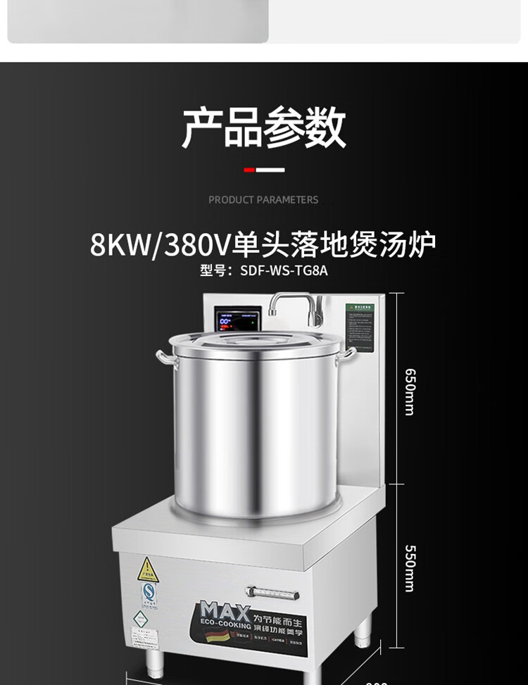 Stevison(史蒂芬) SDF-WS-TG12A 单头高背矮汤炉 电压:380V 功率:12kw 配1个500mm汤桶 304不锈钢