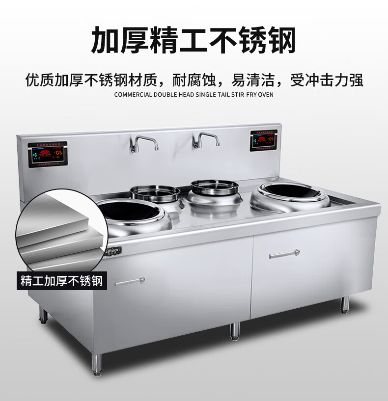 Stevison(史蒂芬) SDF-WS-SWG15D 双头双尾小炒炉 电压:380V 功率:15KW+15KW 配500mm小炒锅*2 304不锈钢
