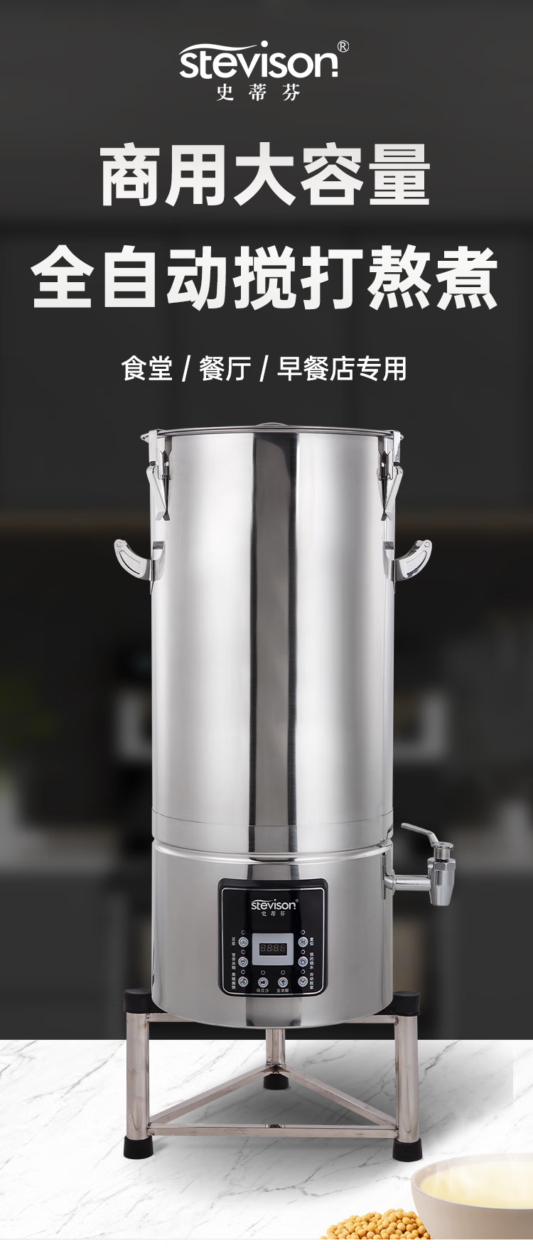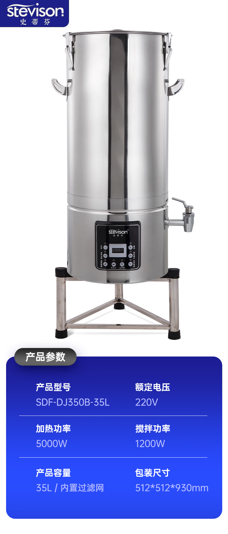 Stevison(史蒂芬) SDF-DJ350B-35L 商用豆浆机35L 商用米糊豆浆机 内置过滤网,全钢机型 容量30-35L 220V (配一个三角架) 不锈钢