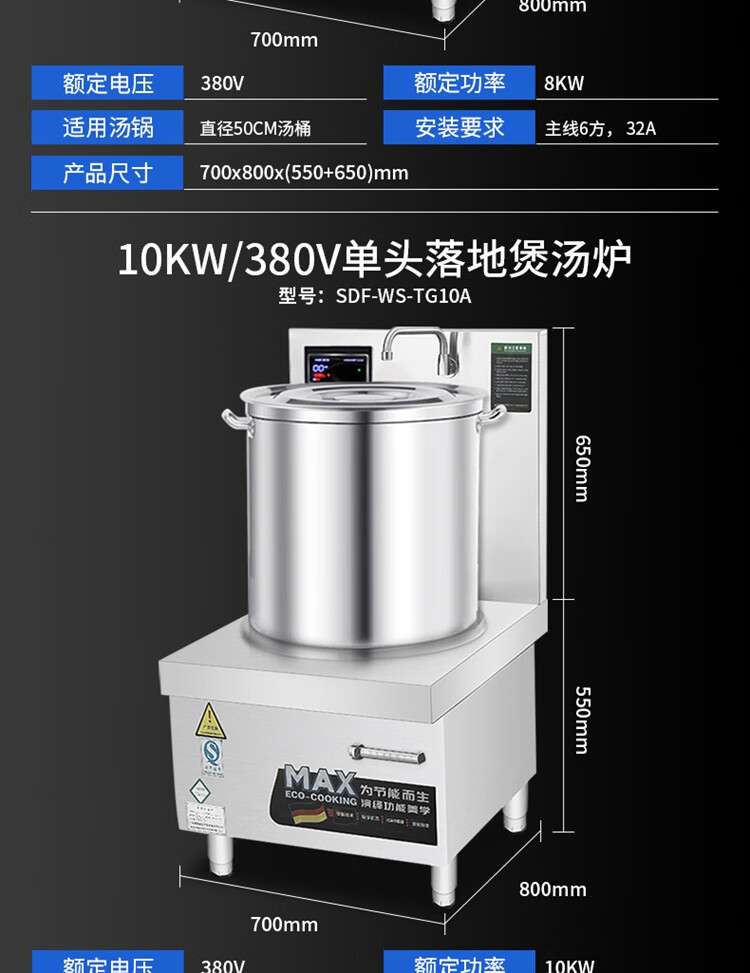 Stevison(史蒂芬) SDF-WS-TG15A 单头高背矮汤炉 电压:380V 功率:15kw 配1个500mm汤桶 304不锈钢