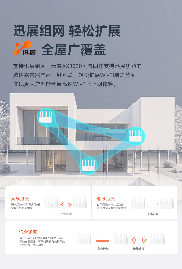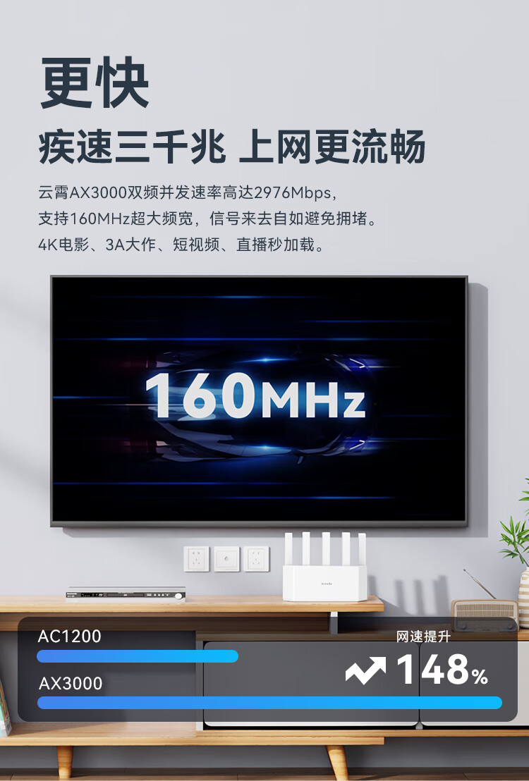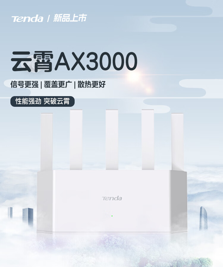腾达(Tenda) AX3000 云霄白路由器 无线千兆穿墙王信号增强Mesh家用5G双频