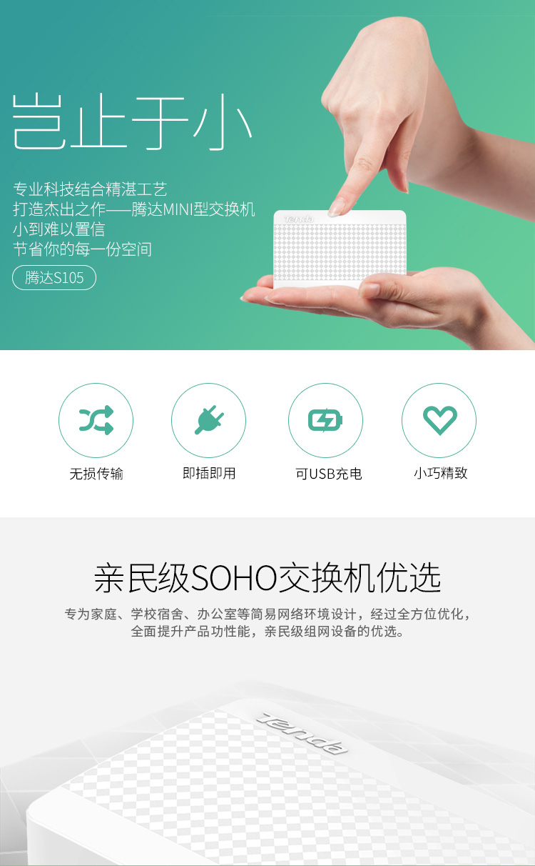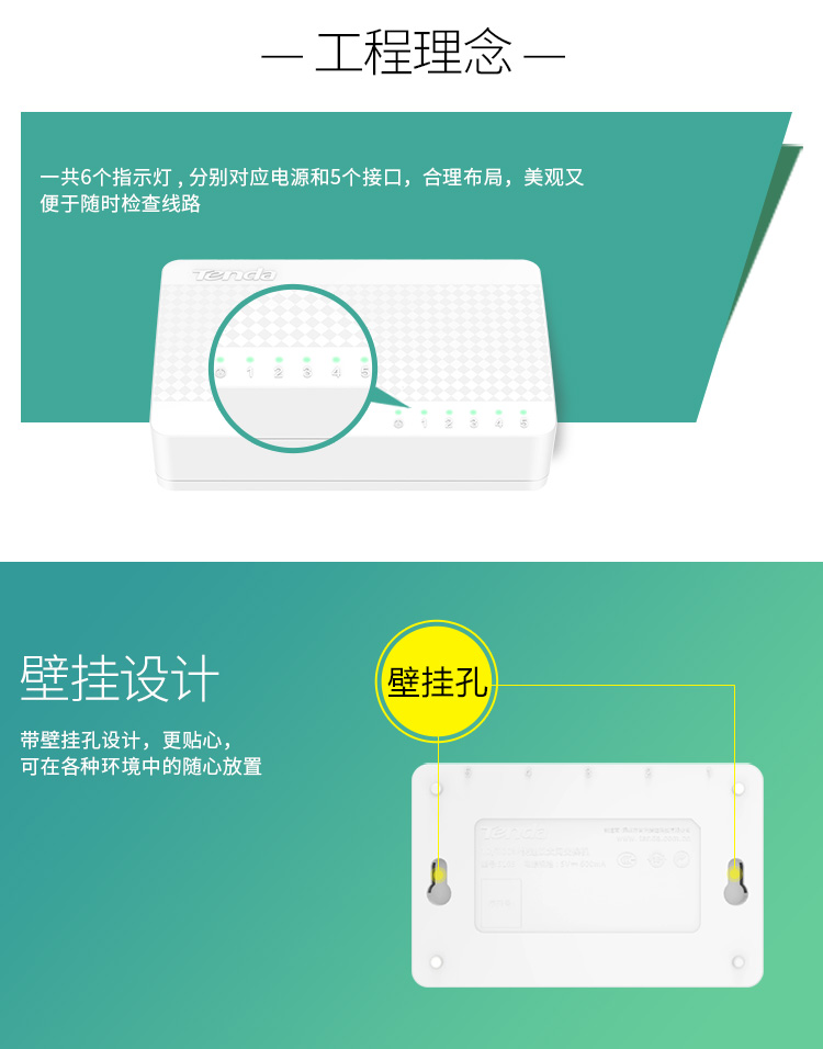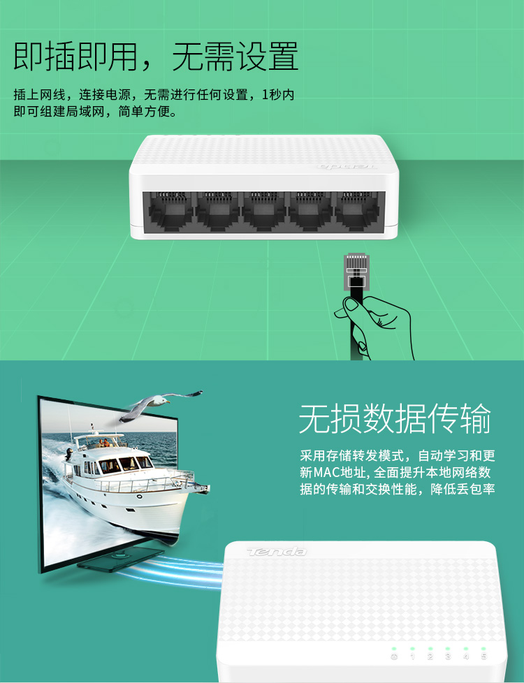 腾达(Tenda) S105 百兆交换机 4口-5口-8口家用交换器转换器 网线分线器转接口 网络拓展器分流器 HUB集线器 5口百兆