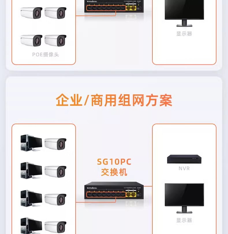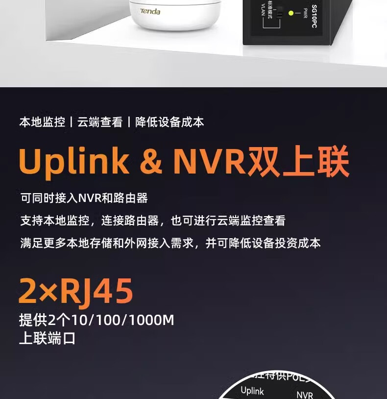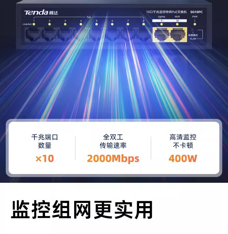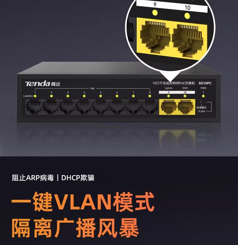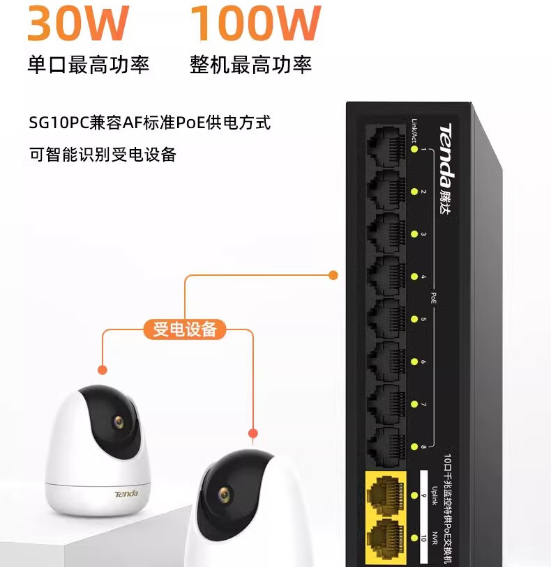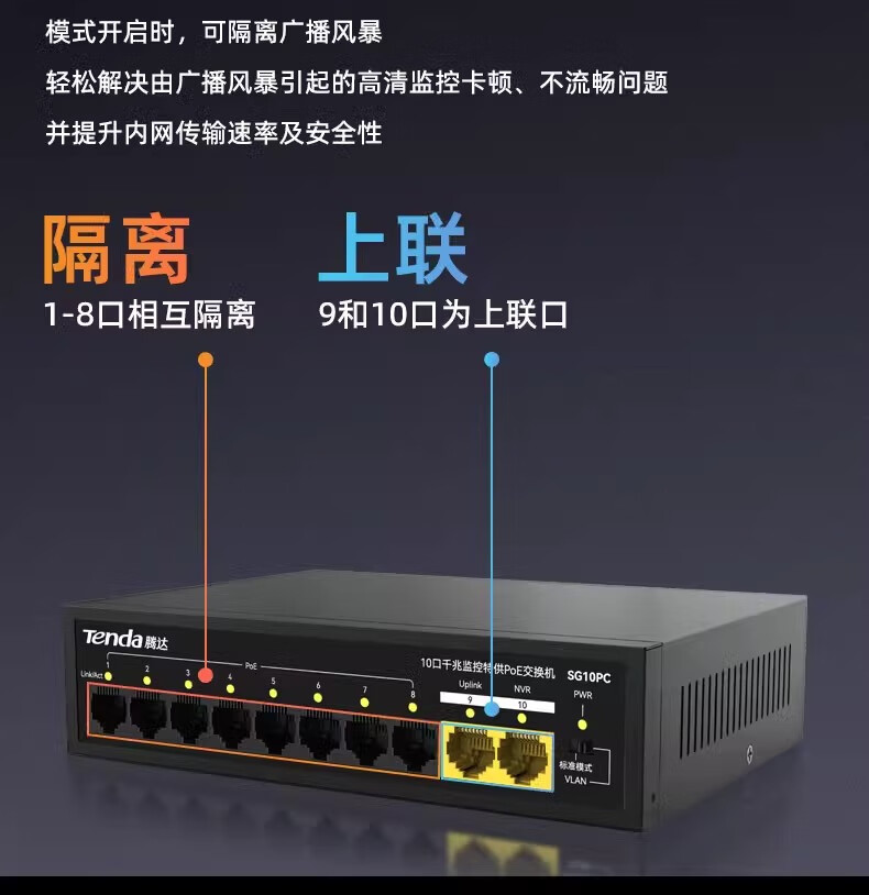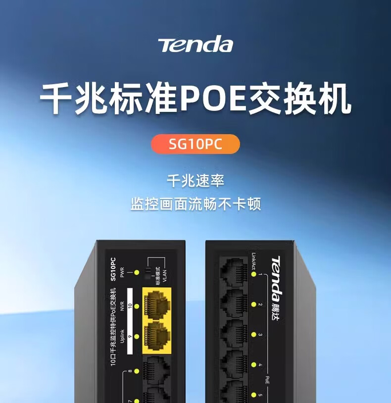 腾达(Tenda) SG10PC 百兆-千兆POE供电交换机 4口-6口-8口家用监控摄像头专用交换器