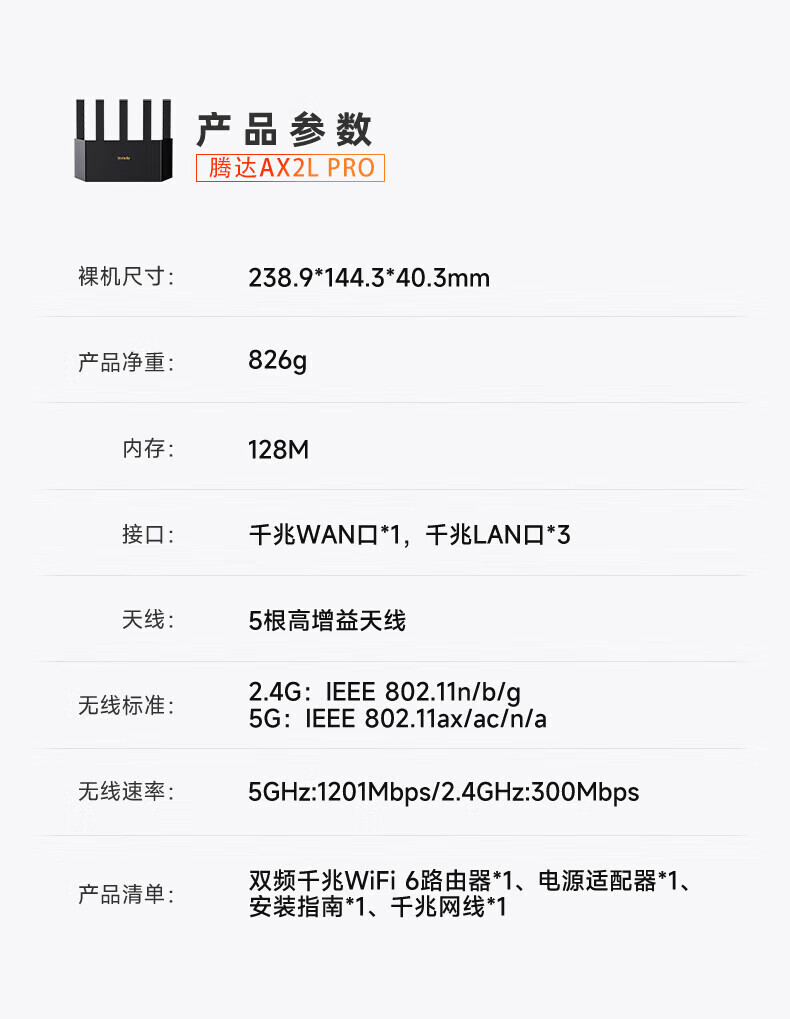 腾达(Tenda) 路由器AX2L Pro 无线家用全屋Mesh升级立式路由器