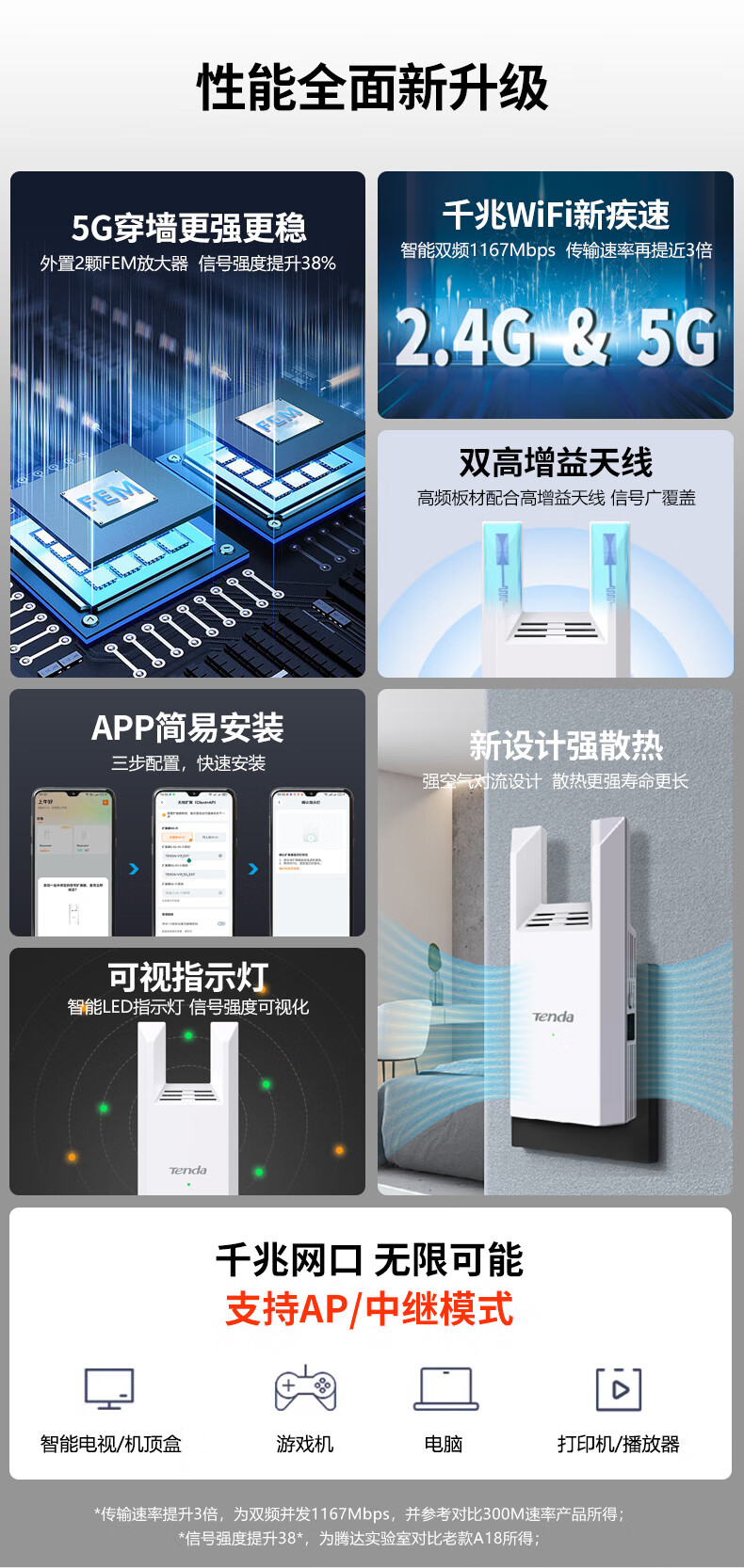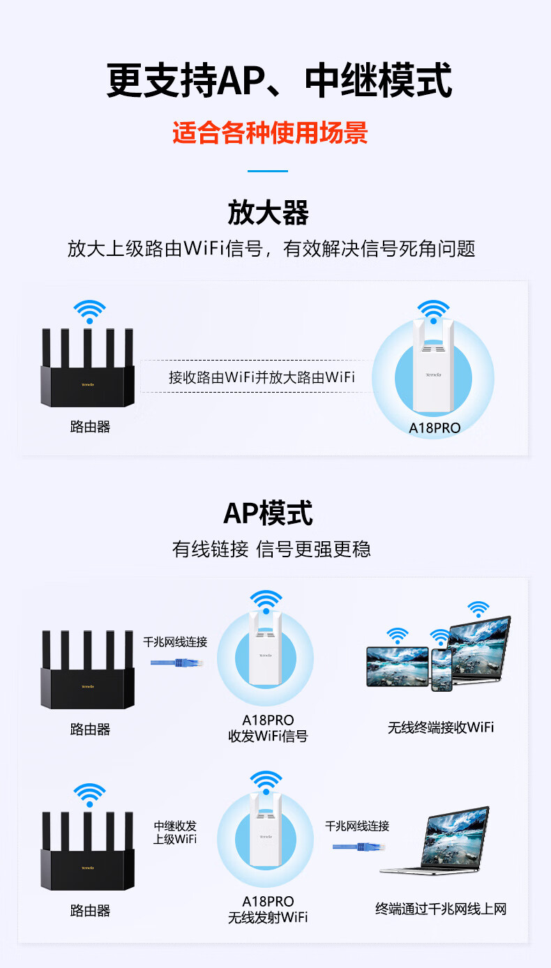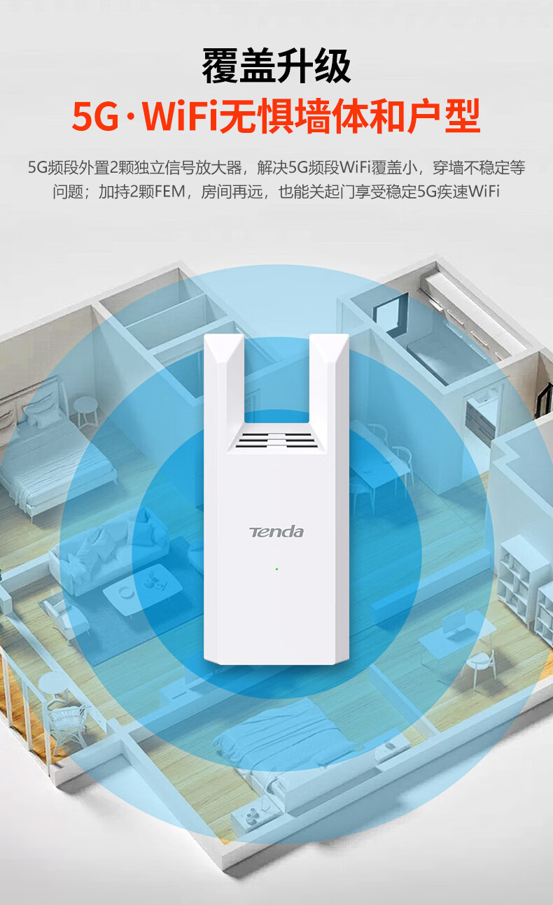腾达(Tenda) A18pro WiFi信号放大器1200M增强5G 无线信号双频高速路由器wi-fi扩大中继器家用AP