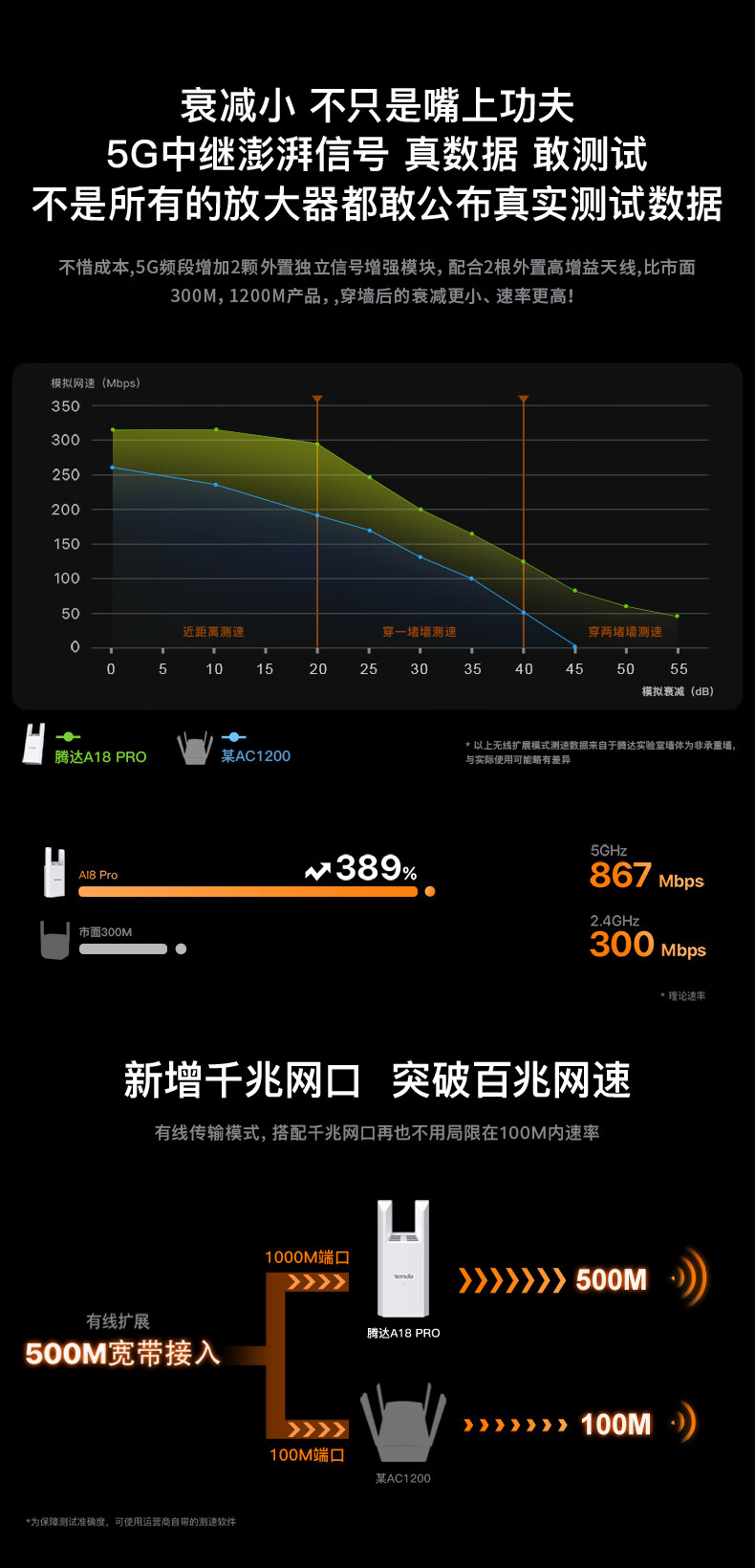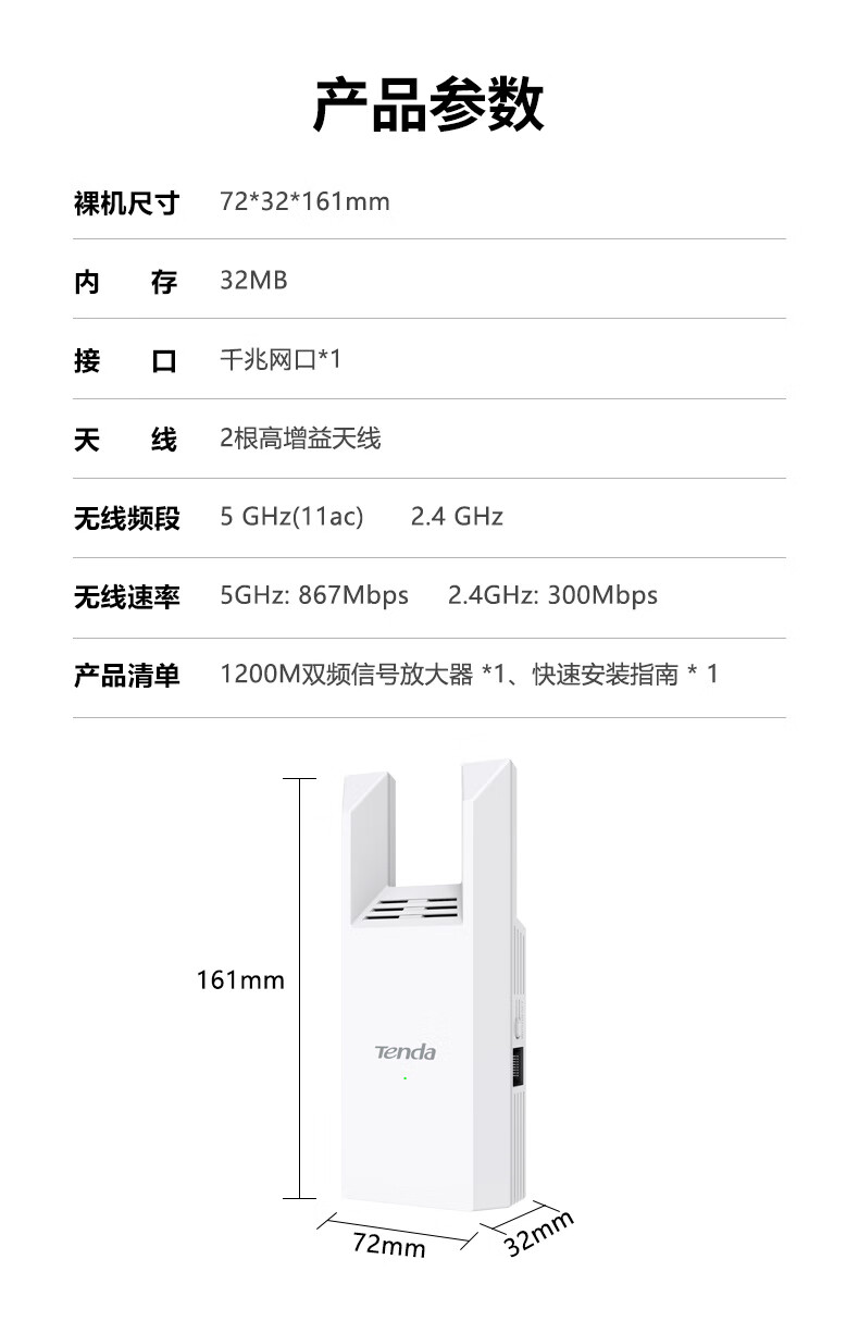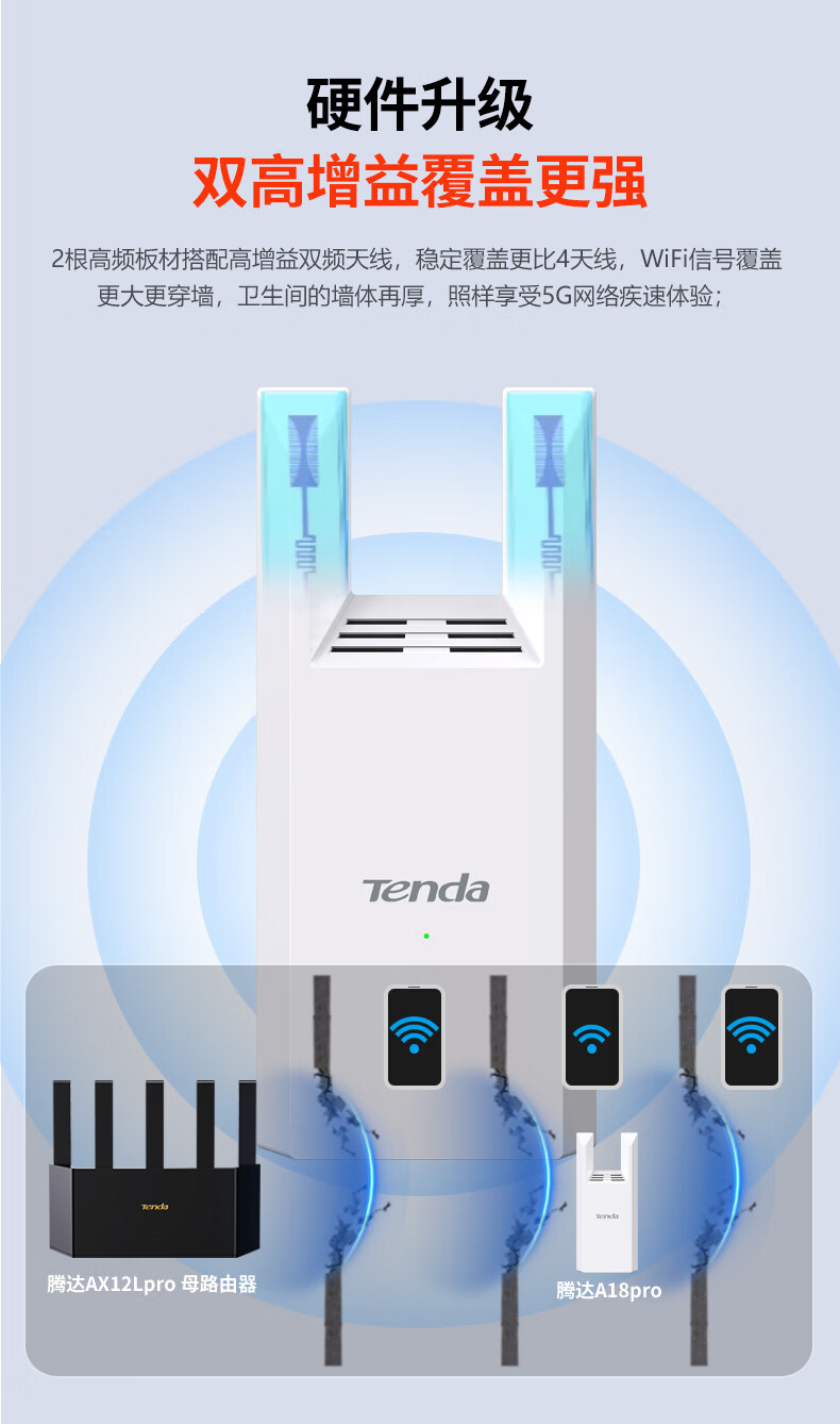 腾达(Tenda) A18pro WiFi信号放大器1200M增强5G 无线信号双频高速路由器wi-fi扩大中继器家用AP