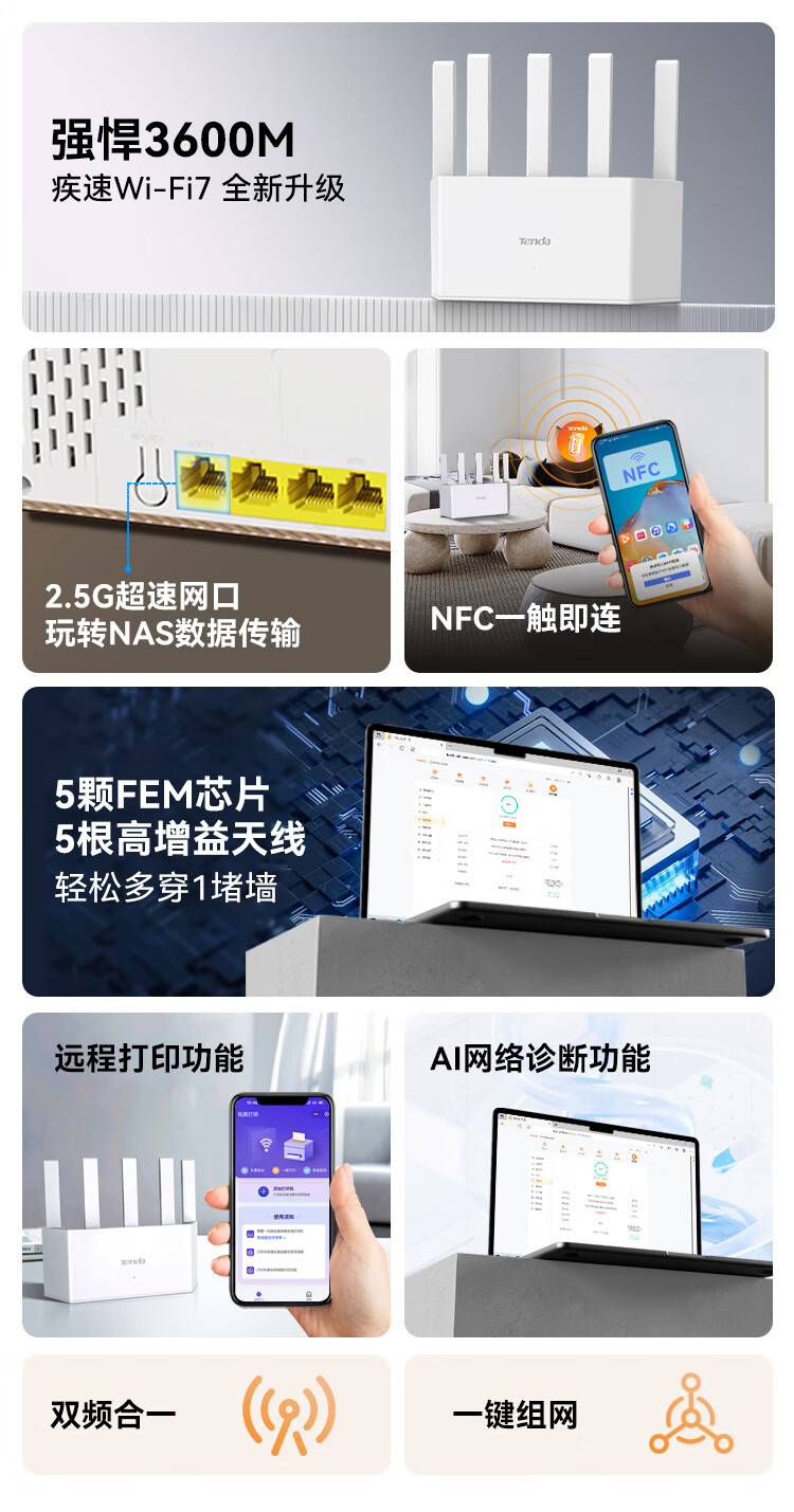 腾达(Tenda) BE3LjPro 路由器 超强2.5G无线千兆穿墙王WiFi信号增强放大器