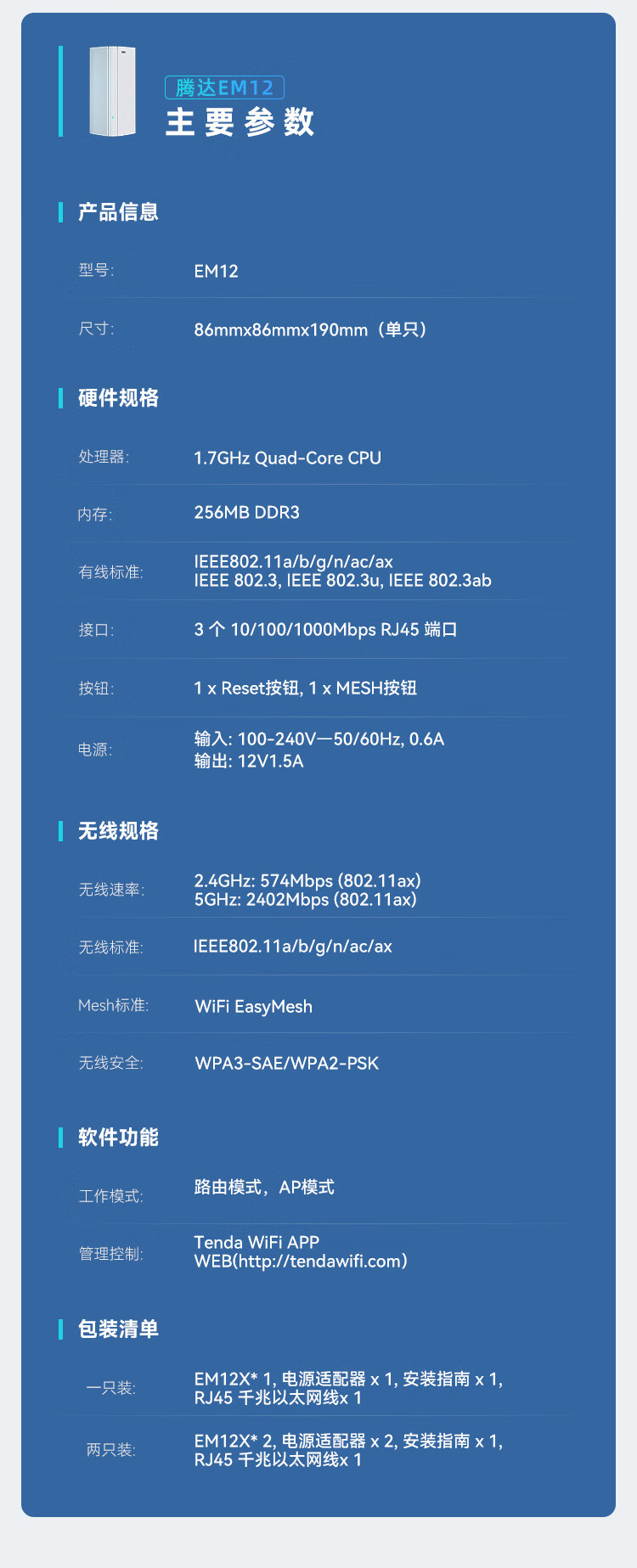 腾达(Tenda) AX5400 分布式WiFi6路由器 5G双频千兆 全屋WiFi Mesh组网 双只装