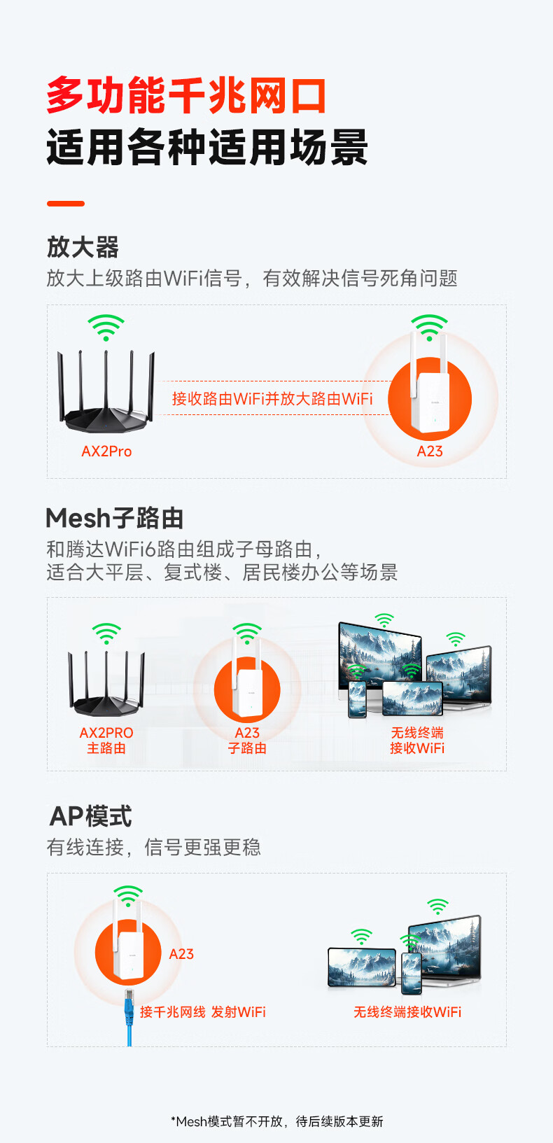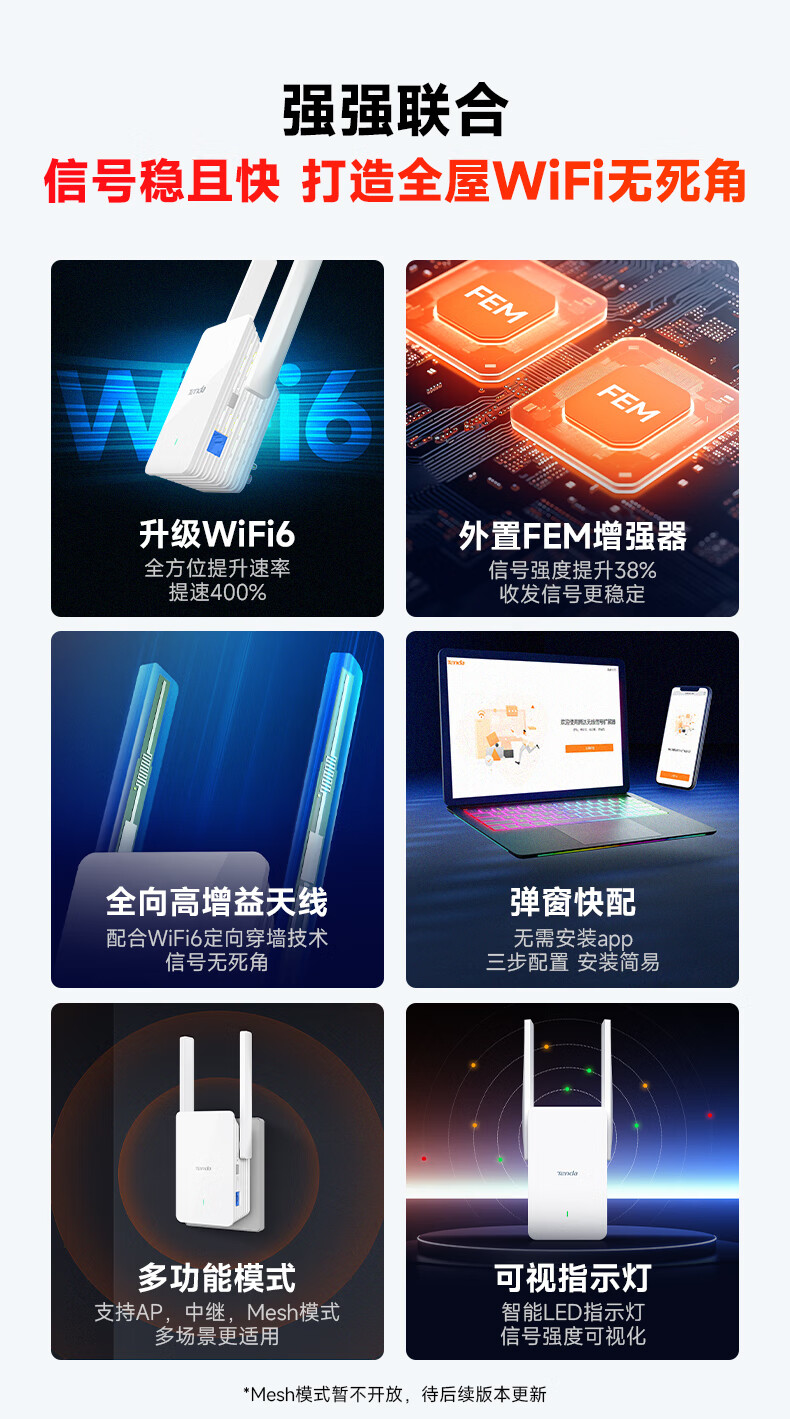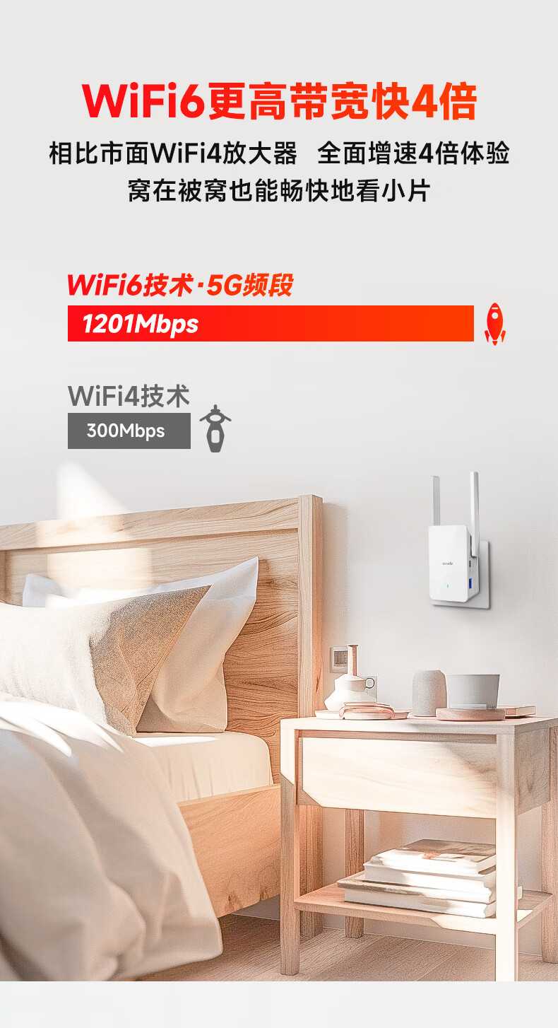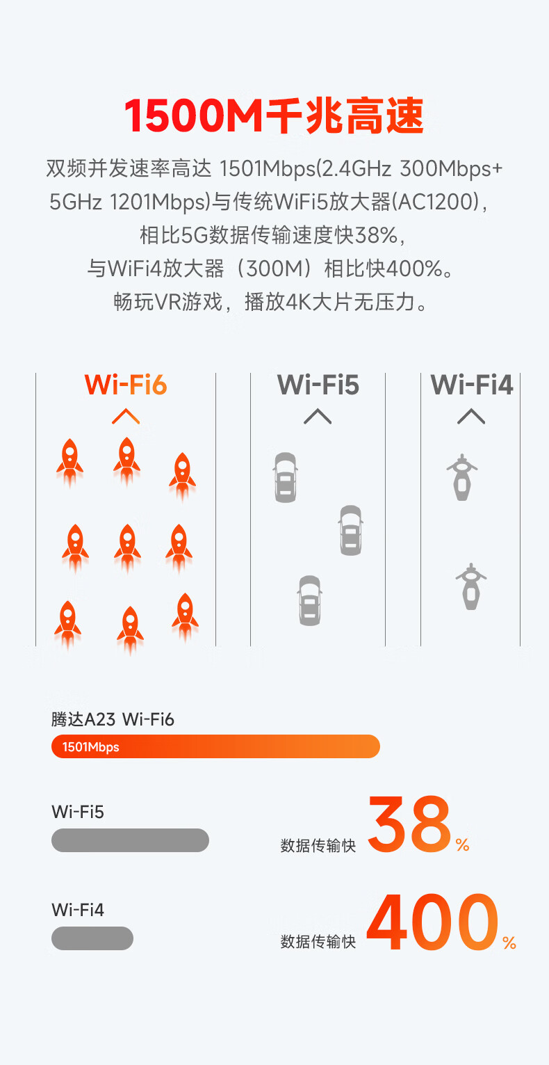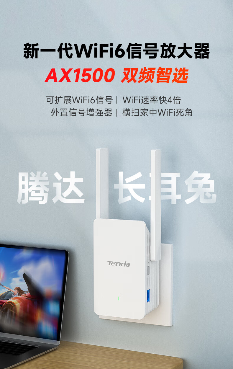 腾达(Tenda) A23 WiFi6信号放大器1500M高速率千兆网口5G无线信号增强路由wife中继扩展AP扩大器