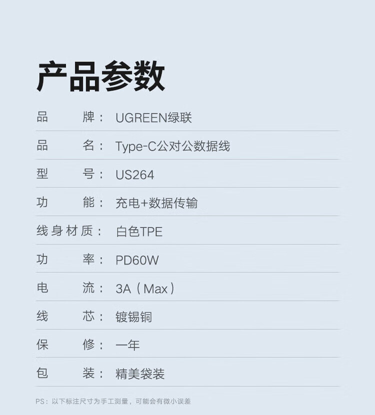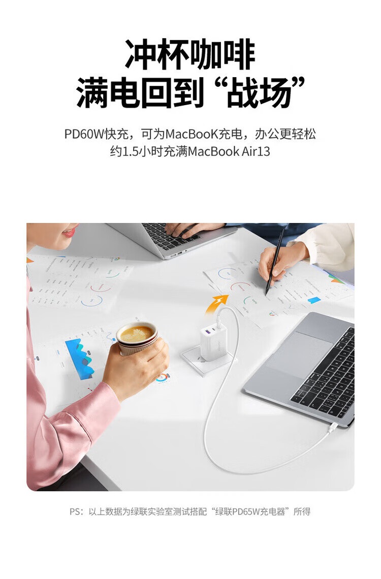 绿联(UGREEN)Type-C数据线快充pd60W 1.5米黑色 50998