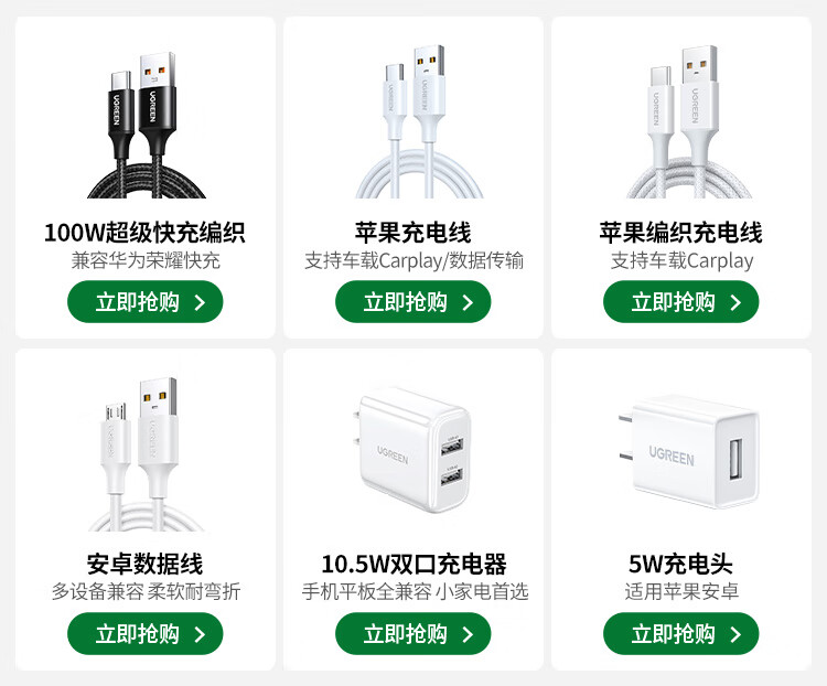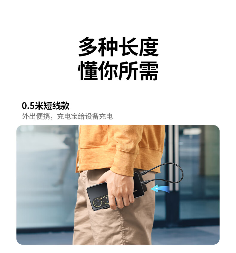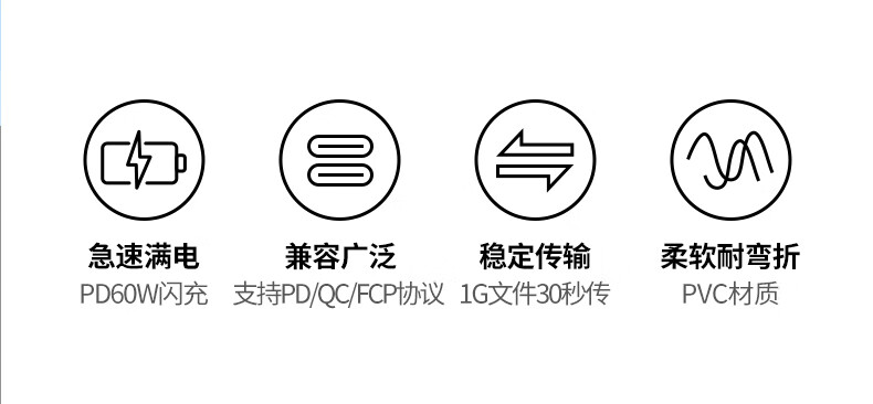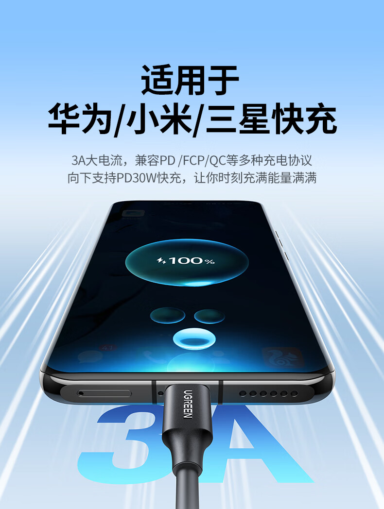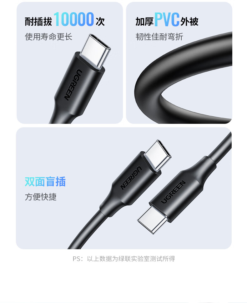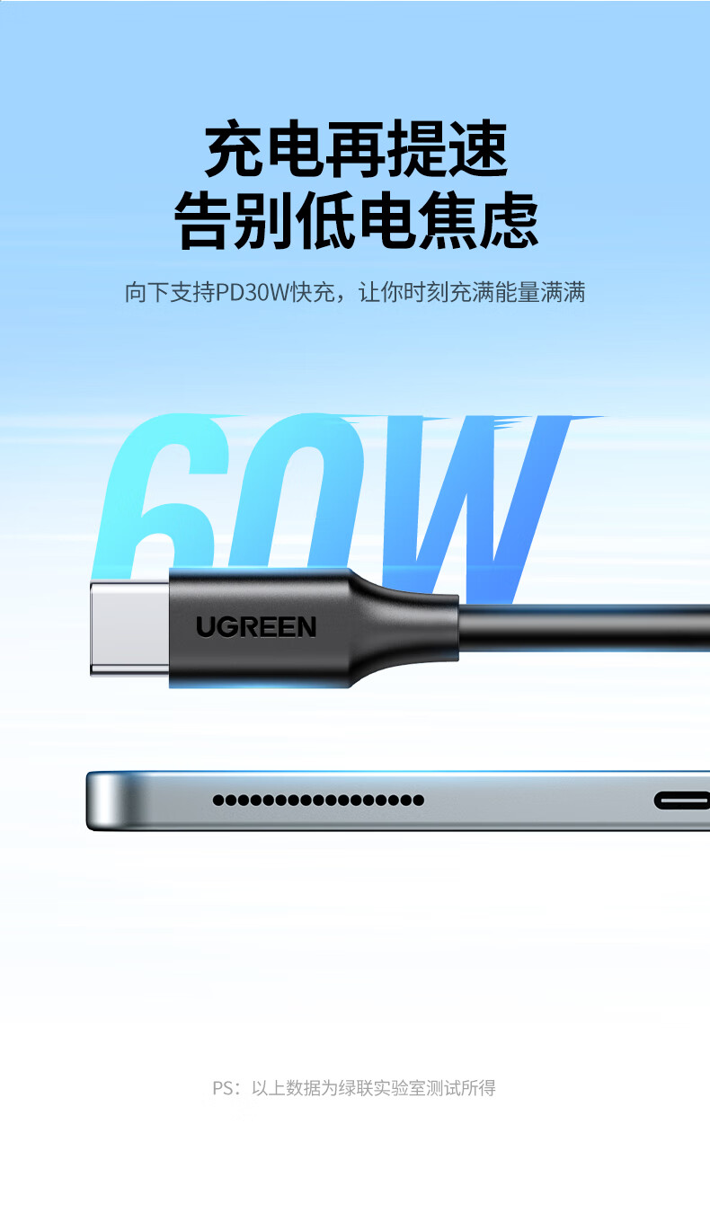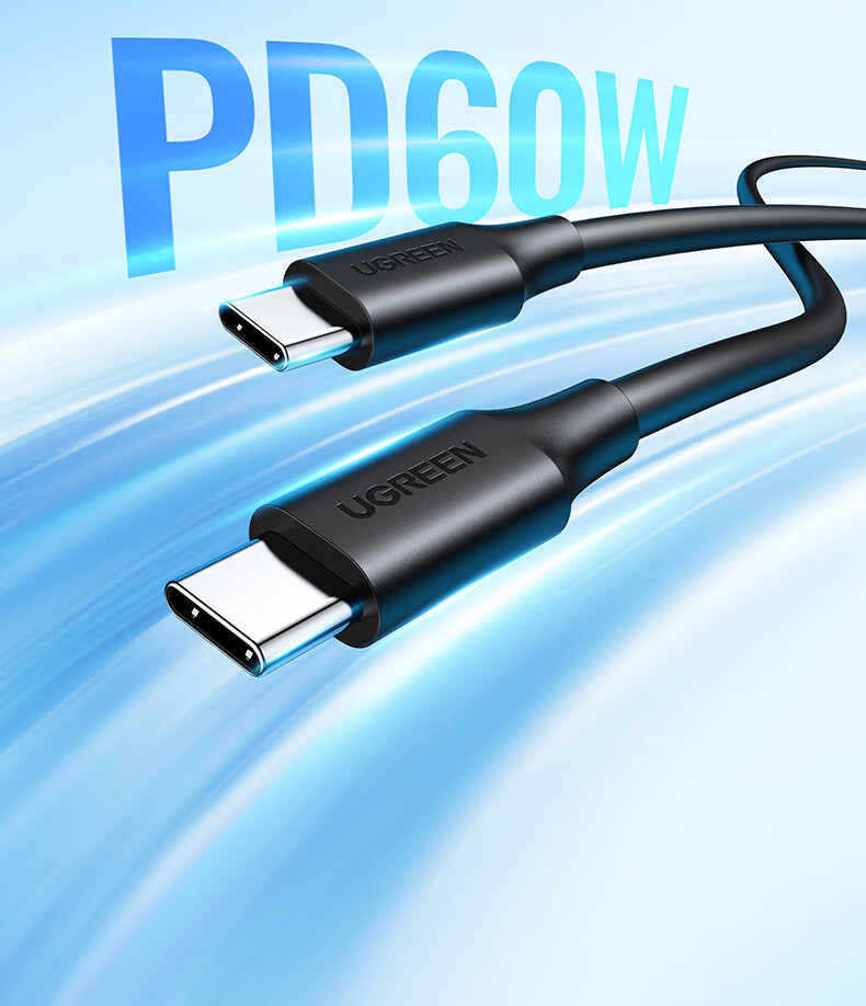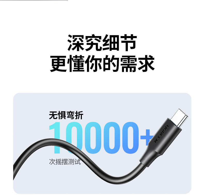 绿联Type-C数据线 白色1米 快充PD60W 柔韧耐弯折 10303
