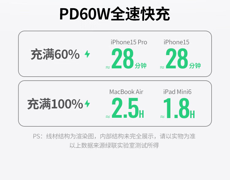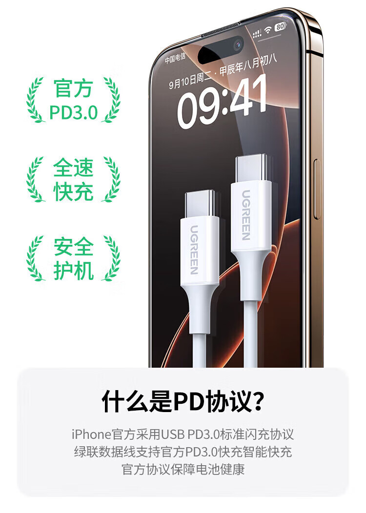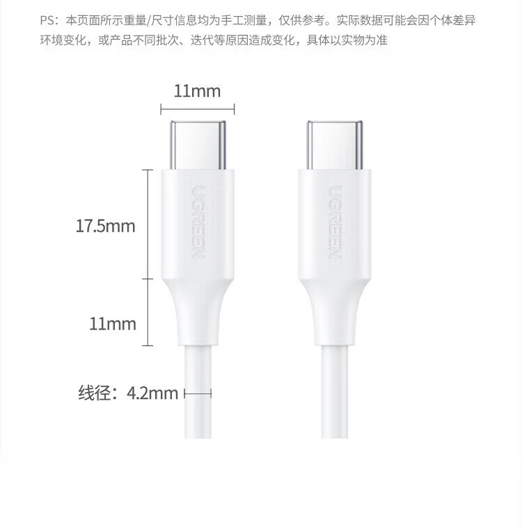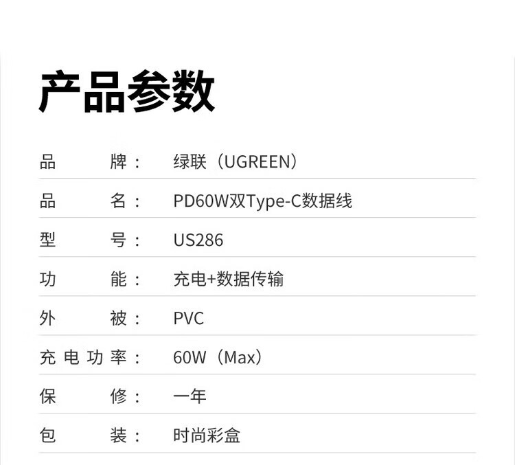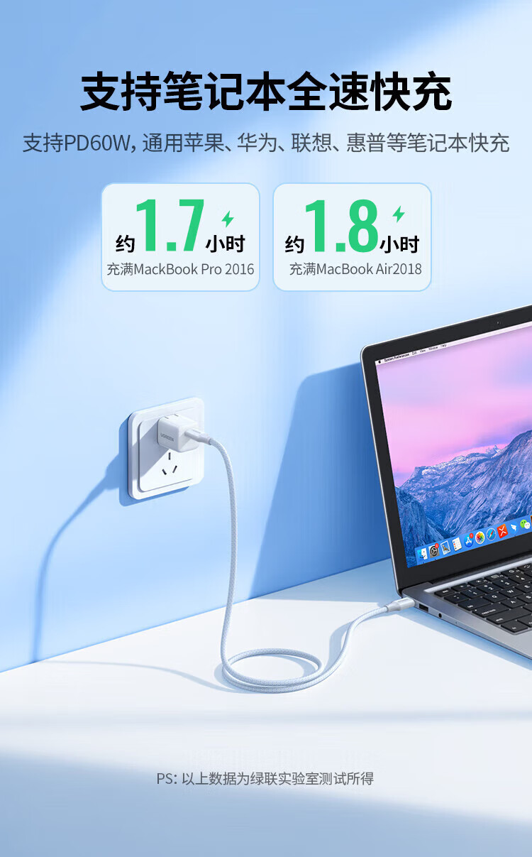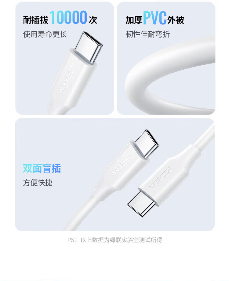 绿联(UGREEN)TypeC数据线PD60W快充 1.5米白色 10304