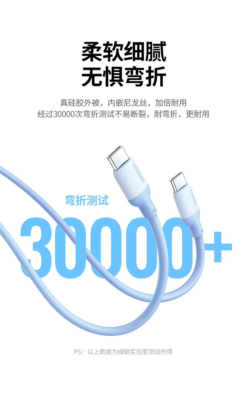 绿联双头Type-C数据线PD100W快充硅胶编织 2米100W 银灰色 15586
