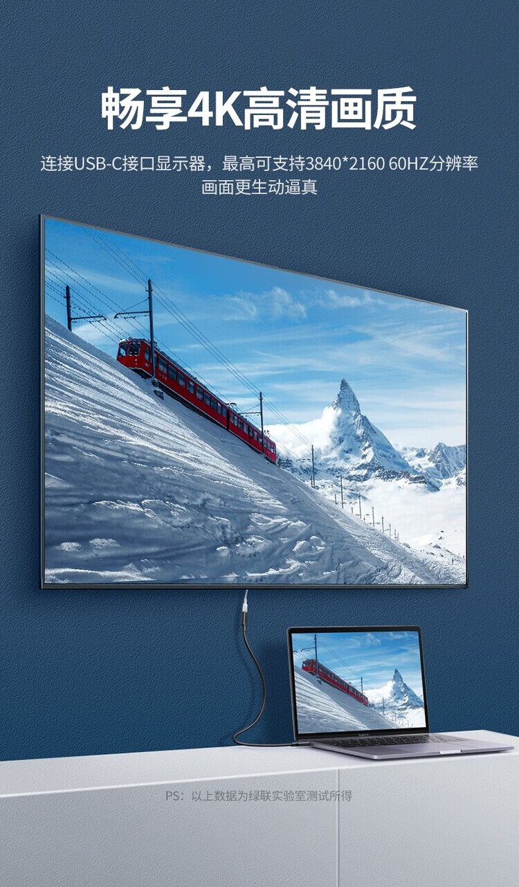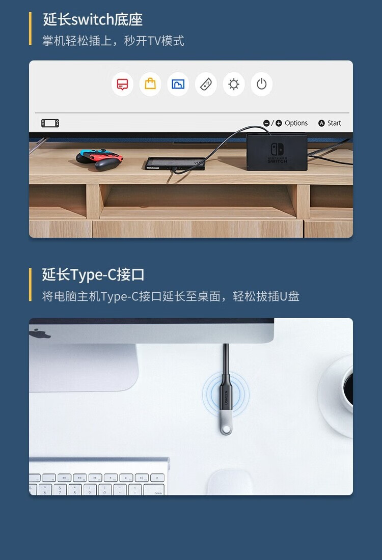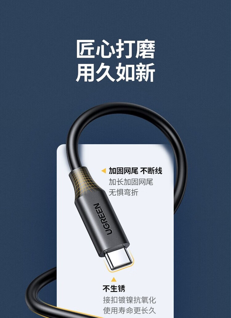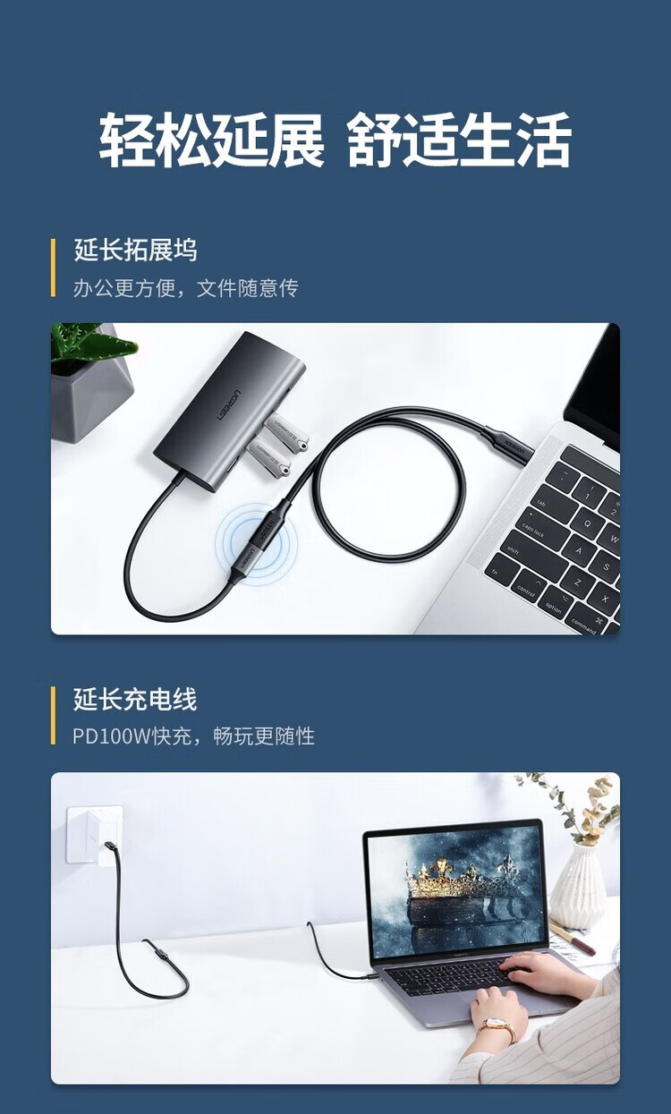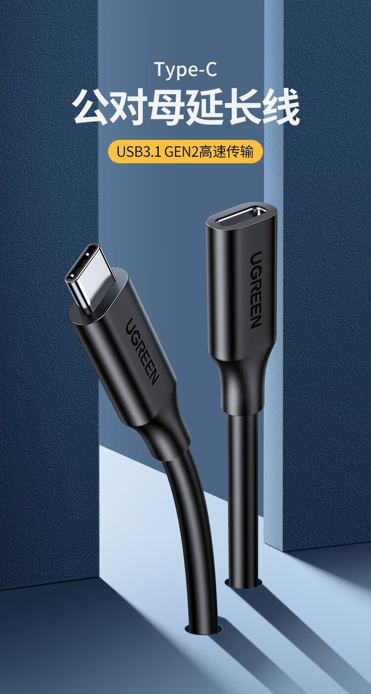 绿联Type-C延长线公对母数据线 5A 1米 10387