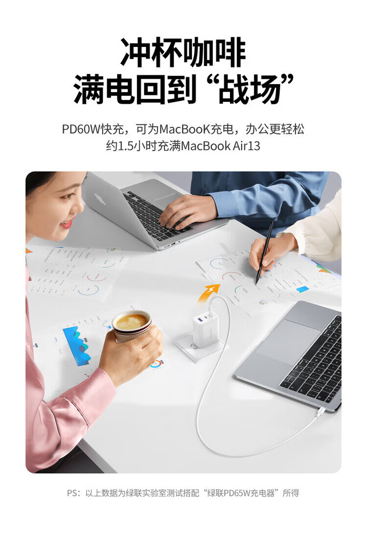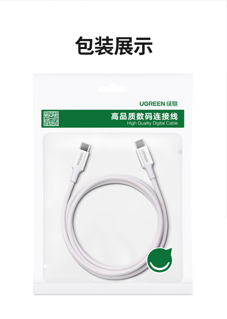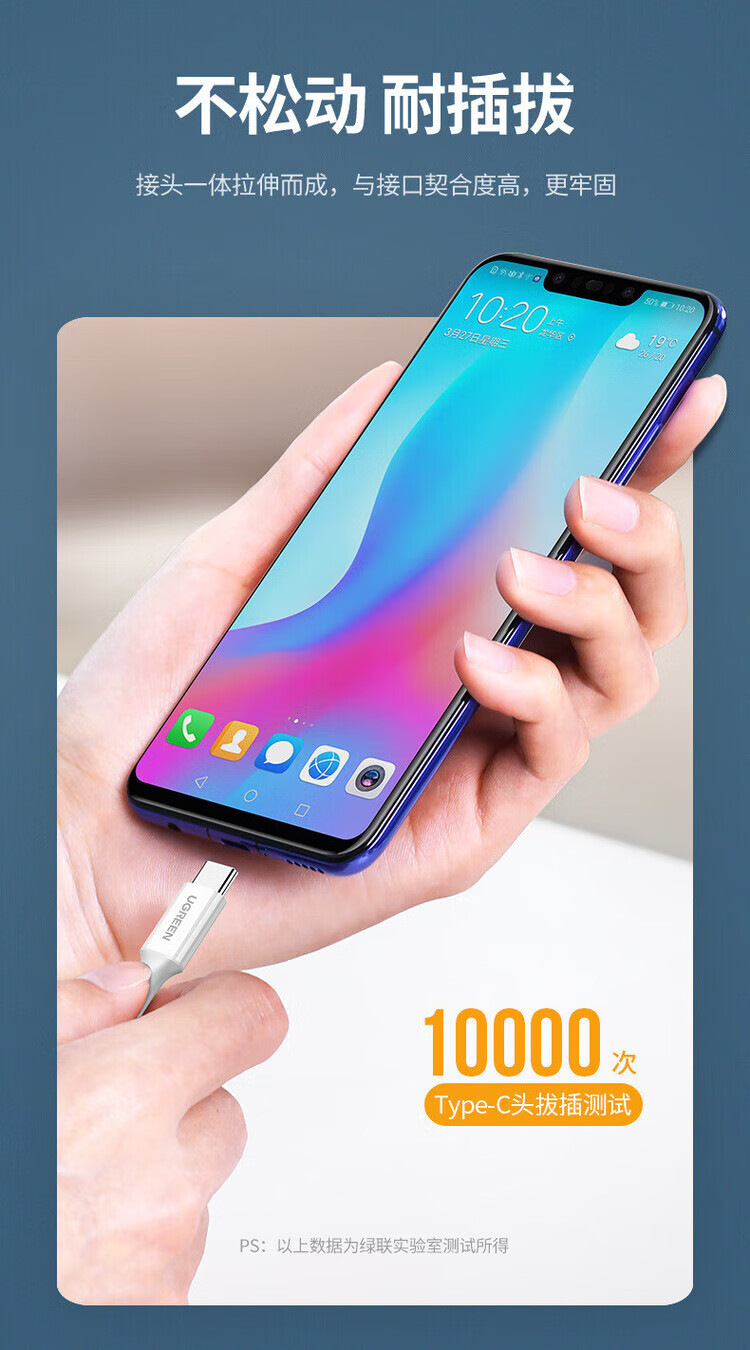 绿联(UGREEN)Type-C数据线快充pd60W 2米黑色 10306
