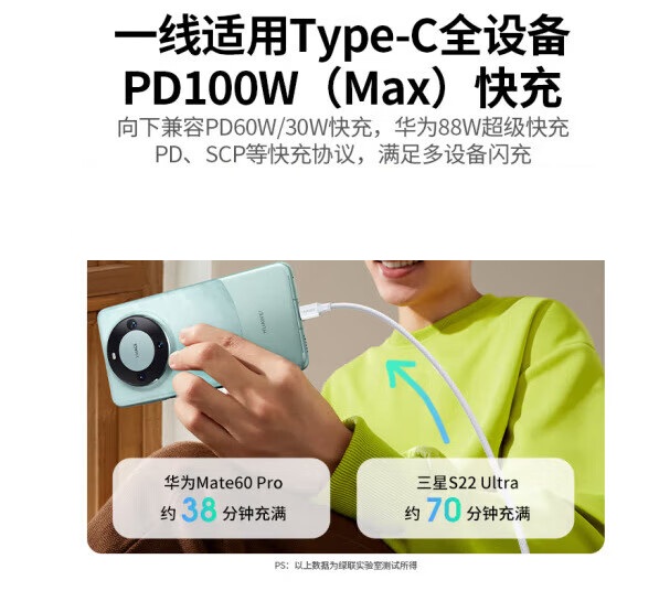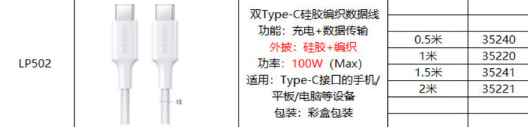 绿联(UGREEN)双头Type-C数据线PD100W快充 1米35220