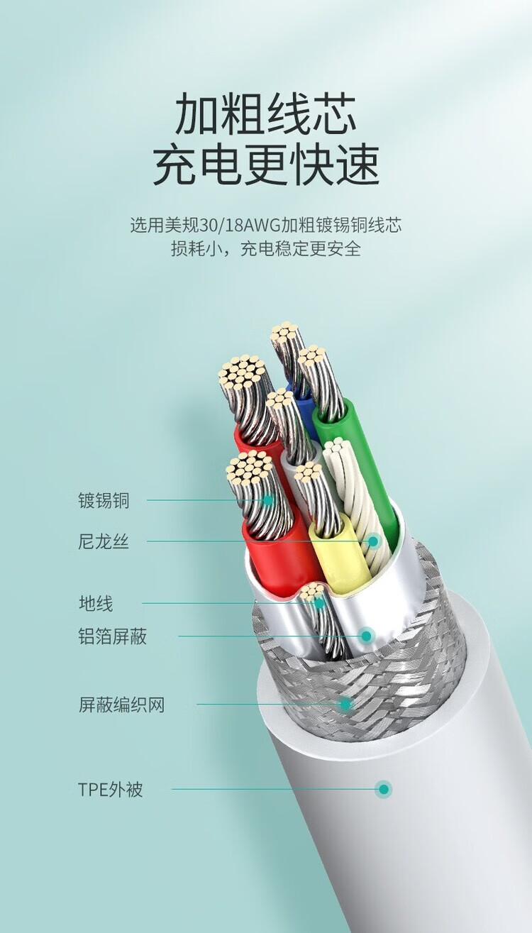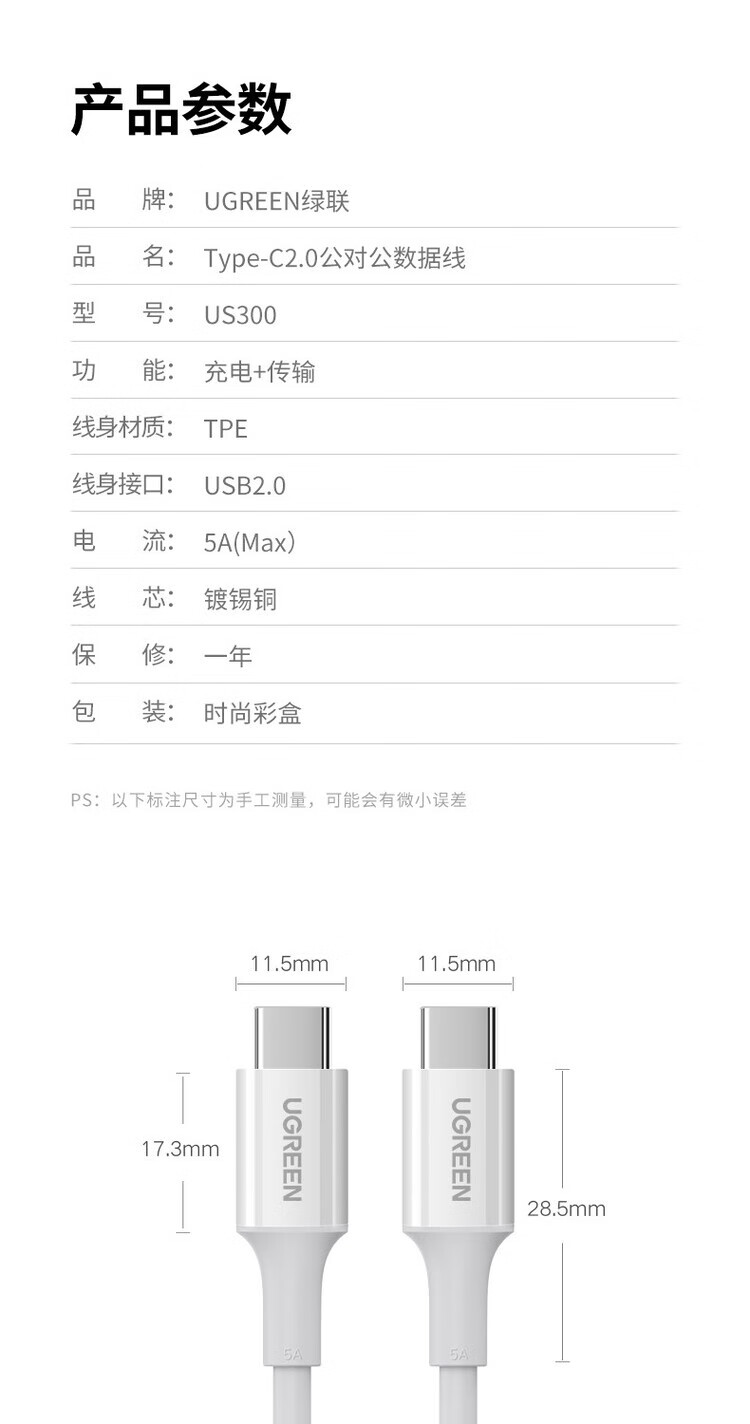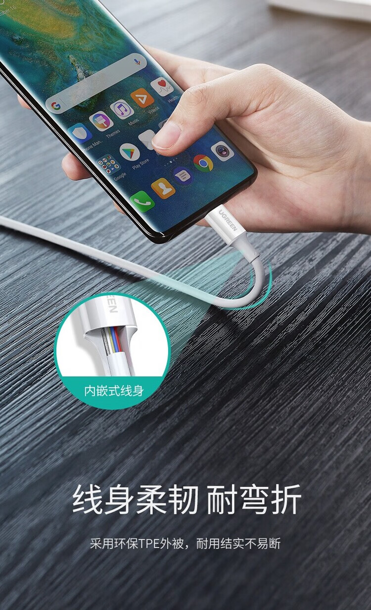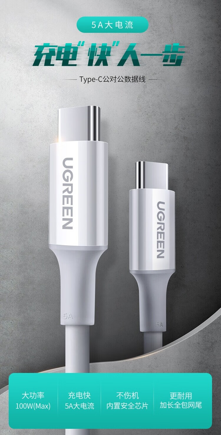 绿联(UGREEN)TypeC数据线PD100W快充白色2米 60552