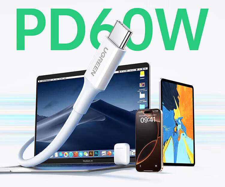 绿联(UGREEN)TypeC数据线PD60W快充 2米白色 10305