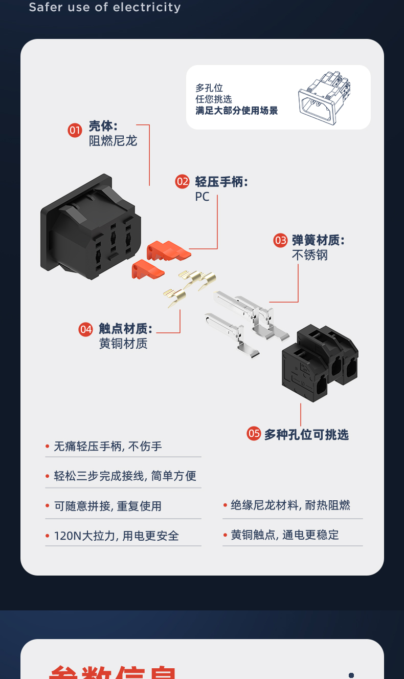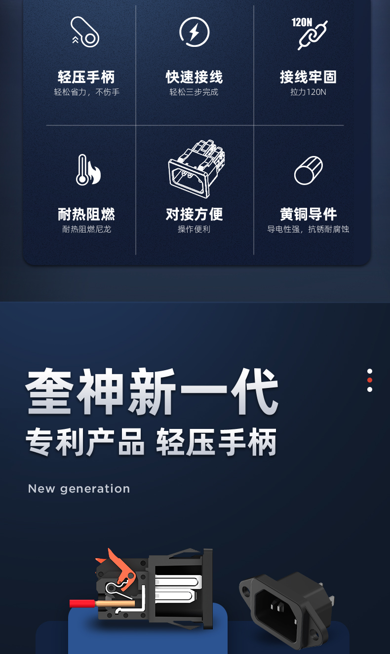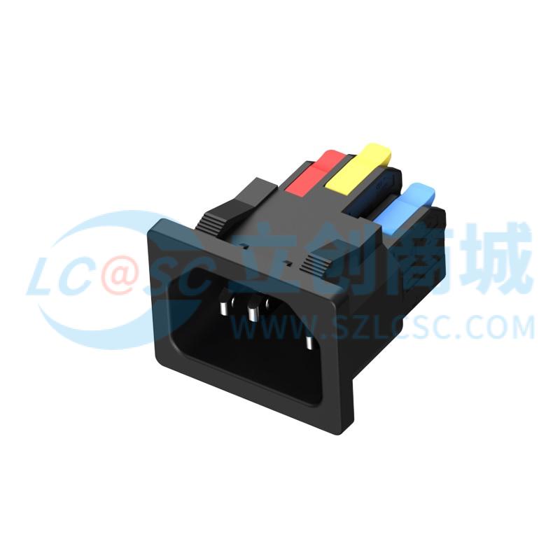 HUIJUN(汇君)卡式快接品字插座 黑色公座三色手柄导体镀镍KC-14-2Q-BL-3S-LJ