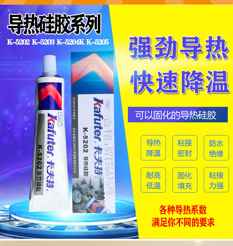卡夫特 导热硅胶 K-5203 可固化耐高温绝缘防水led灯CPU散热铝基板固定 导热系数1.2 白色 80g/支