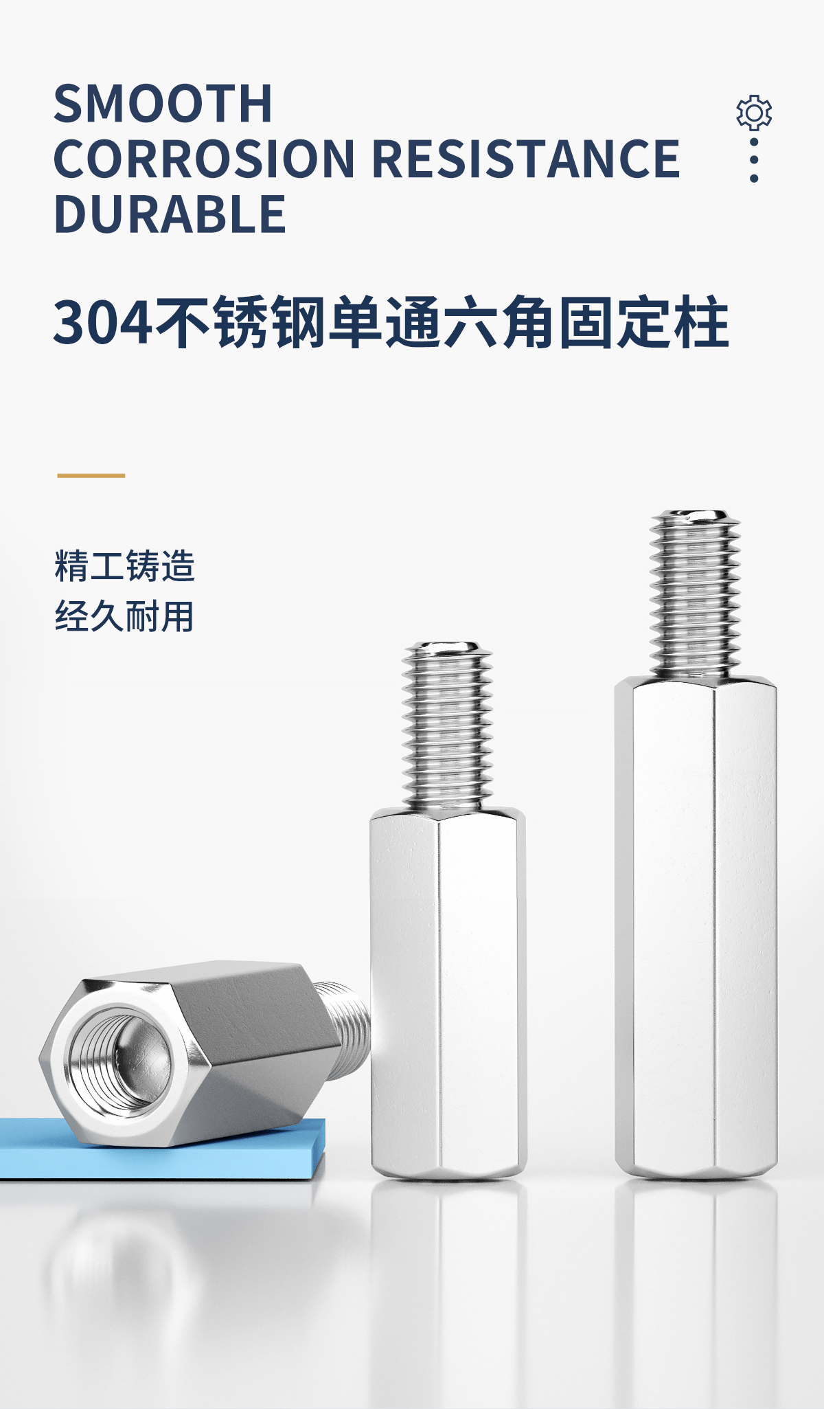 GUWANJI(固万基) 304不锈钢单头六角螺柱 单通支撑隔离柱机箱主板铜柱螺丝连接柱 M4x20+6