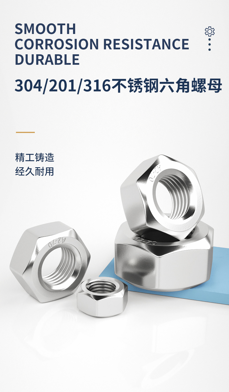 GUWANJI(固万基) 304不锈钢六角螺母螺帽螺丝帽大全 M52