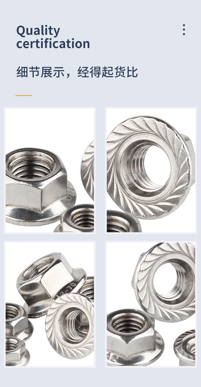 GUWANJI(固万基) 304不锈钢法兰螺母镀锌六角防松螺丝带垫防滑螺帽 M16