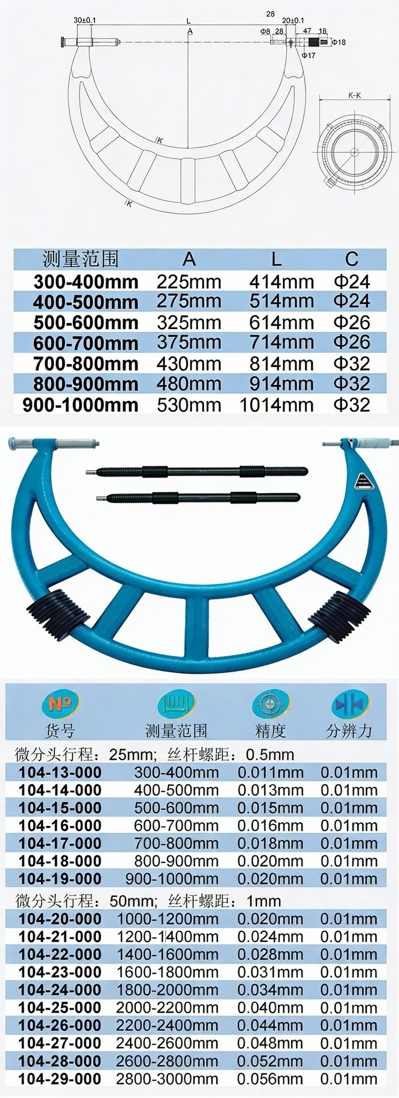 XIBEI(西北) 青量可调测砧外径千分尺,104-28-000 2600-2800*0.01mm、微分头行程50mm 售卖规格:1把