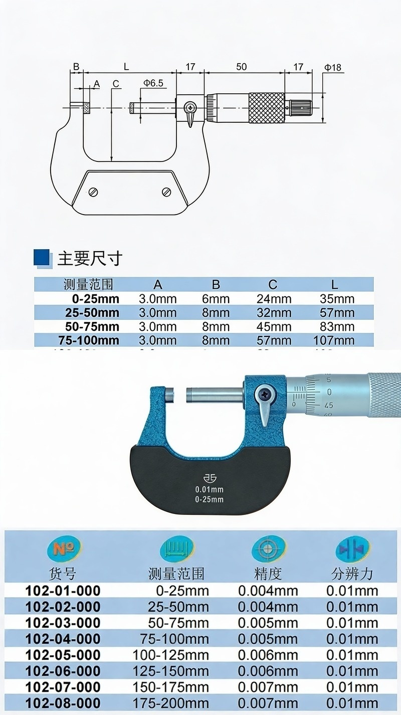 XIBEI(西北) 青量外径千分尺,102-03-000 50-75*0.01mm 售卖规格:1把