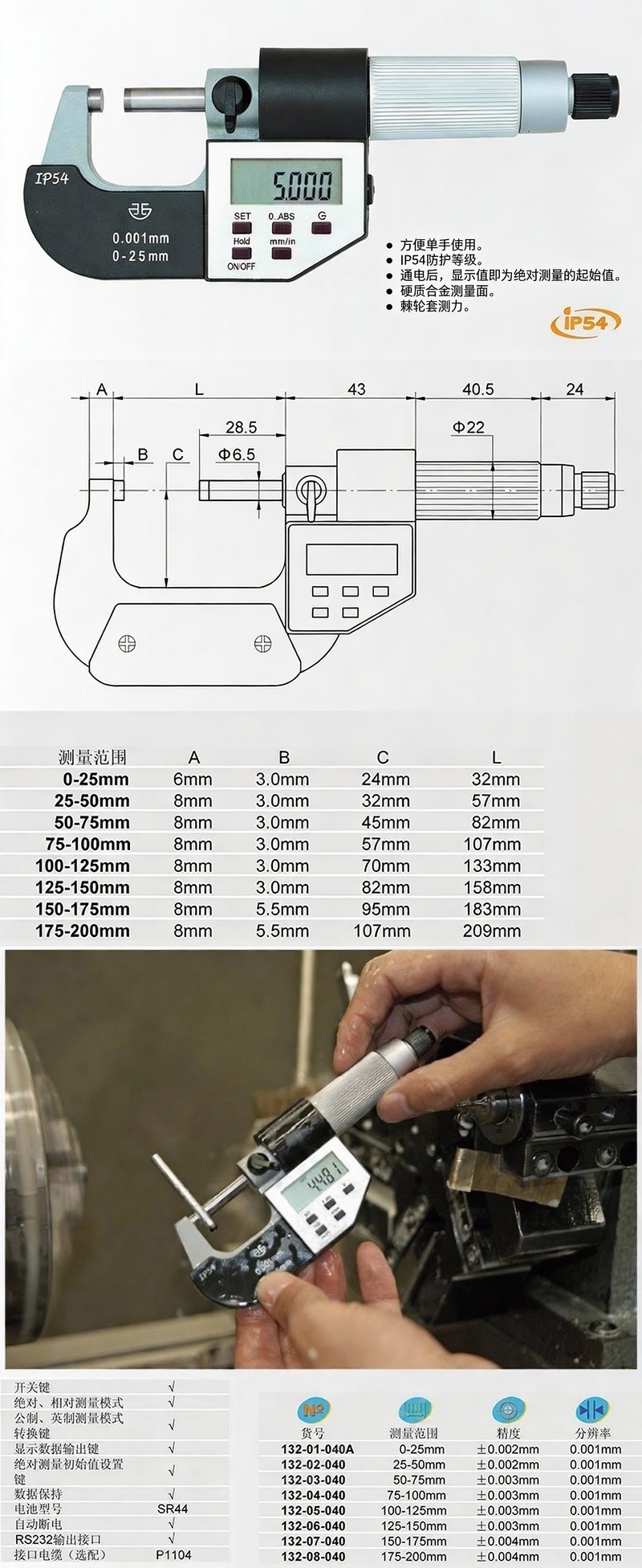 XIBEI(西北) 青量数显外径千分尺,132-04-040 75-100*0.001mm、五键、IP54 售卖规格:1把