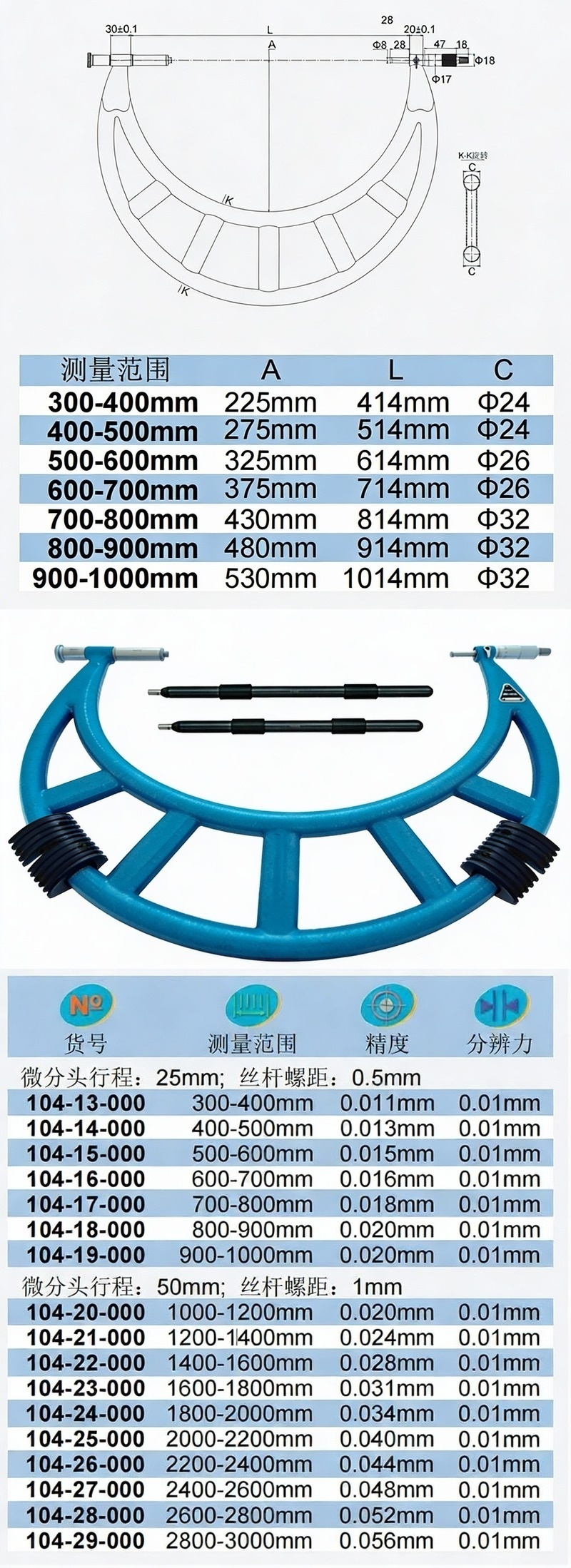 XIBEI(西北) 青量可调测砧外径千分尺,104-27-000 2400-2600*0.01mm、微分头行程50mm 售卖规格:1把