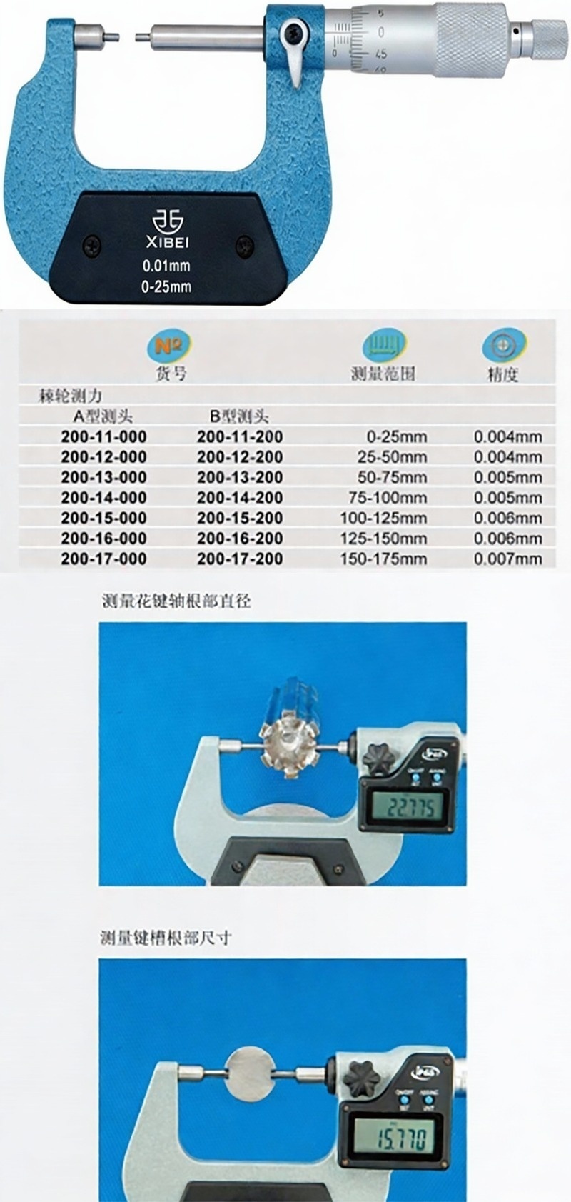 XIBEI(西北) 青量花键小头千分尺,200-11-200 0-25mm*0.004、不含第三方检测 售卖规格:1把