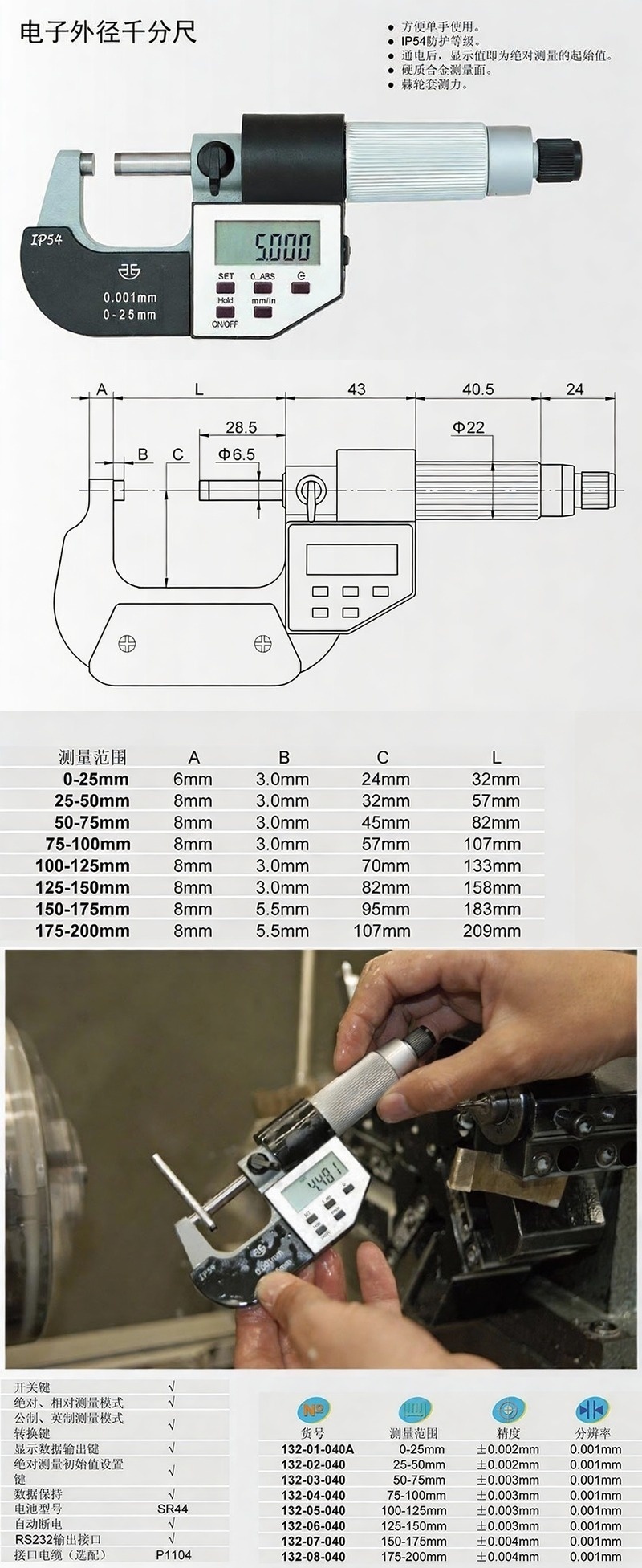 XIBEI(西北) 青量数显外径千分尺,132-03-040 50-75*0.001mm、五键、IP54 售卖规格:1把
