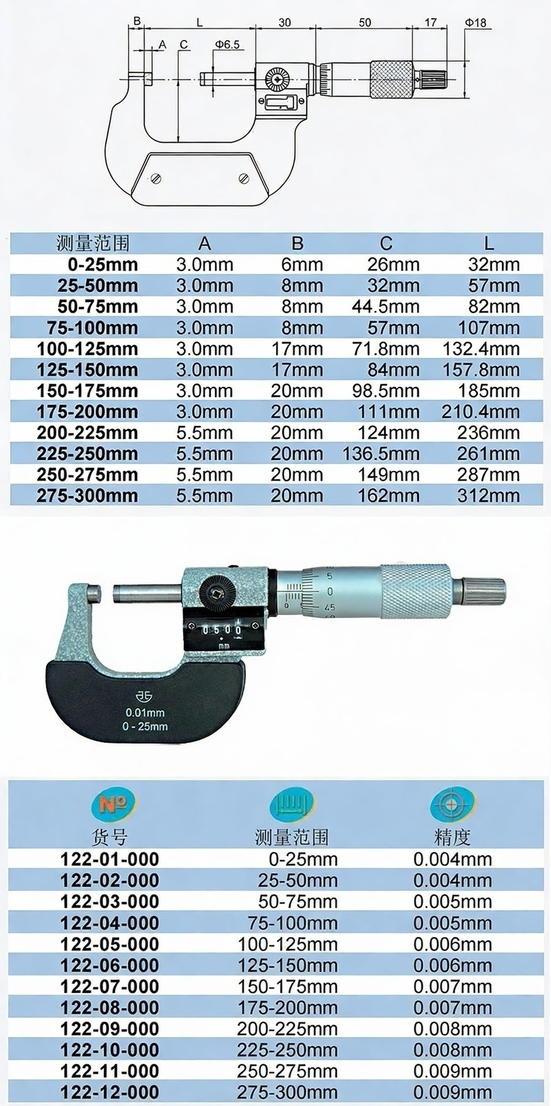 XIBEI(西北) 青量外径千分尺,122-07-000 150-175*0.01mm、模拟计数型 售卖规格:1把