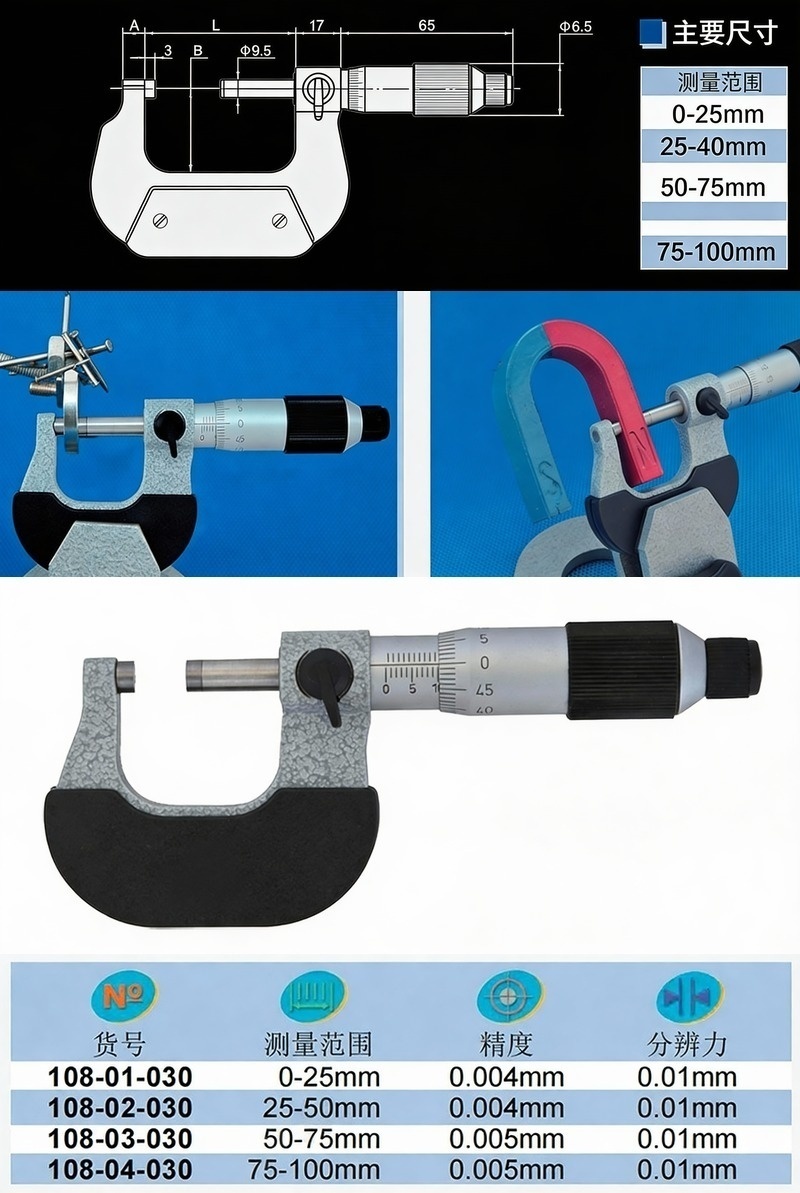 XIBEI(西北) 青量不导磁外径千分尺,108-02-030 25-50*0.01mm、镶合金测量面 售卖规格:1把