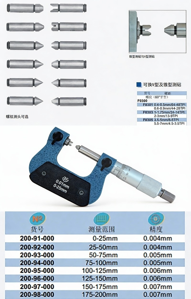 XIBEI(西北) 青量螺纹千分尺(旋转式),200-93-000 50-75mm/0.01mm 售卖规格:1把