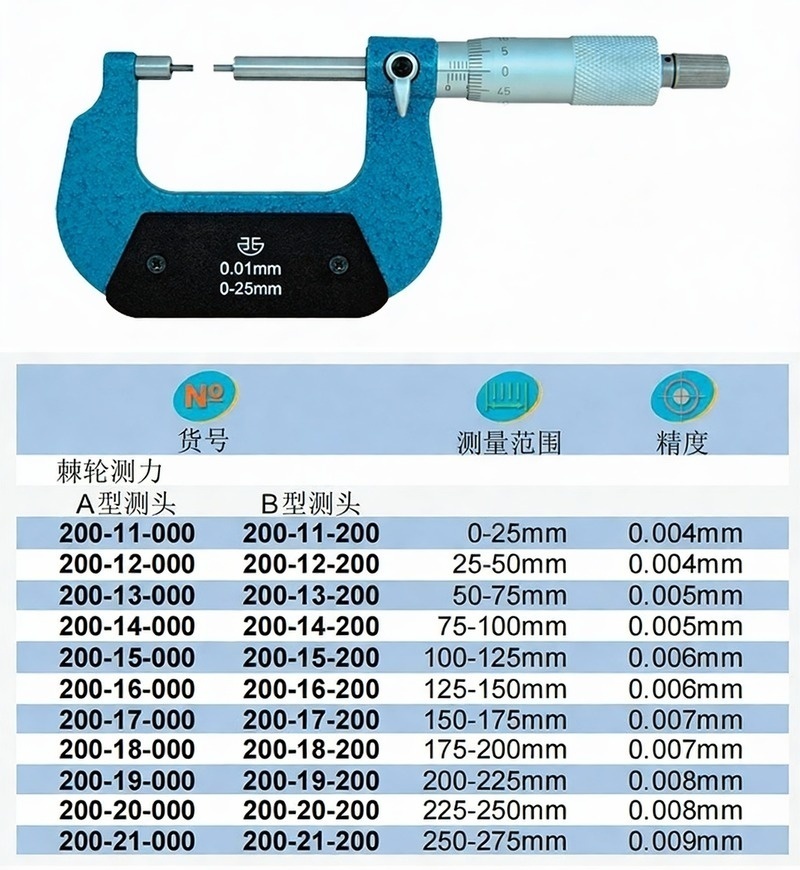 XIBEI(西北) 青量小头千分尺,200-21-200 250-275*0.01mm、B型(Φ3*10) 售卖规格:1把