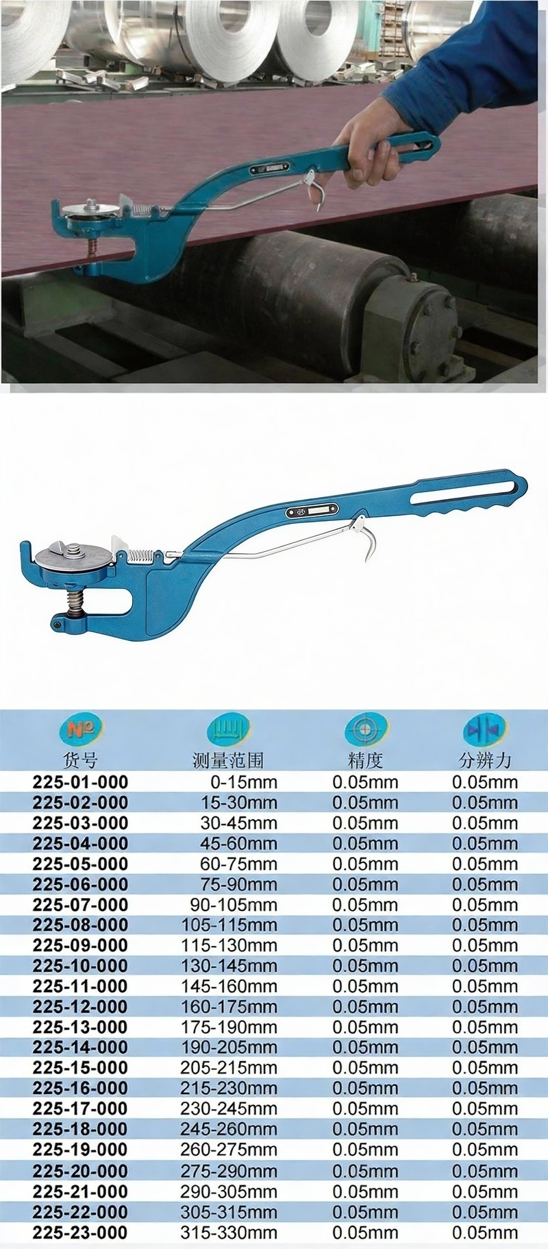 XIBEI(西北) 青量热轧板千分尺,225-16-000 225-240*0.05mm、用于测量热轧钢板厚度 售卖规格:1把