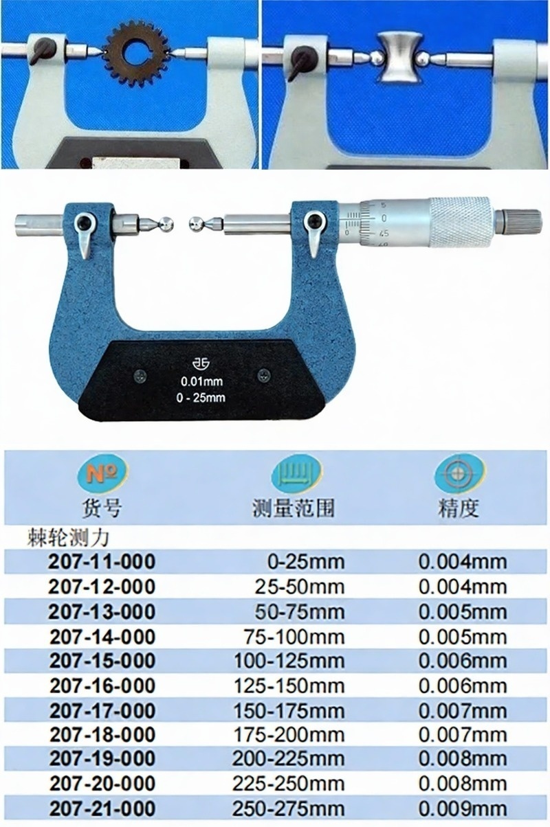 XIBEI(西北) 青量齿轮千分尺,207-20-000 225-250*0.01mm、不配测头 售卖规格:1把