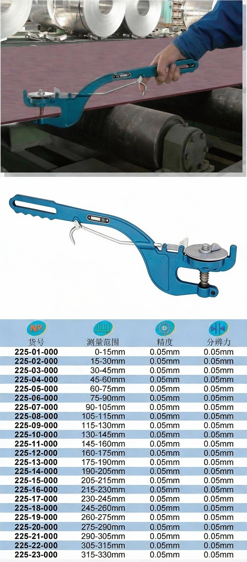 XIBEI(西北) 青量热轧板千分尺,225-17-000 240-255*0.05mm、用于测量热轧钢板厚度 售卖规格:1把