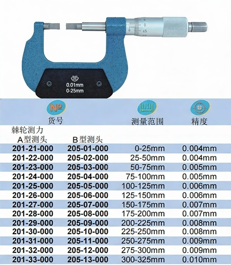 XIBEI(西北) 青量叶片千分尺,205-06-000 125-150*0.01mm、B型(0.4*3.5*6) 售卖规格:1把