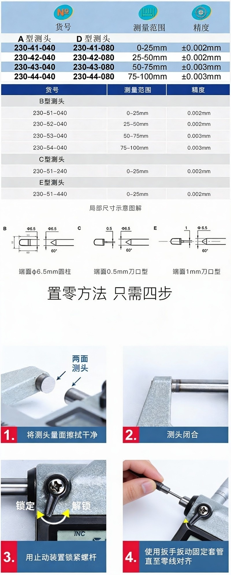 XIBEI(西北) 青量数显尖头千分尺,230-52-040 25-50*0.001mm、B型(60°测头/Φ6.5mm测砧)、五键、IP54 售卖规格:1把