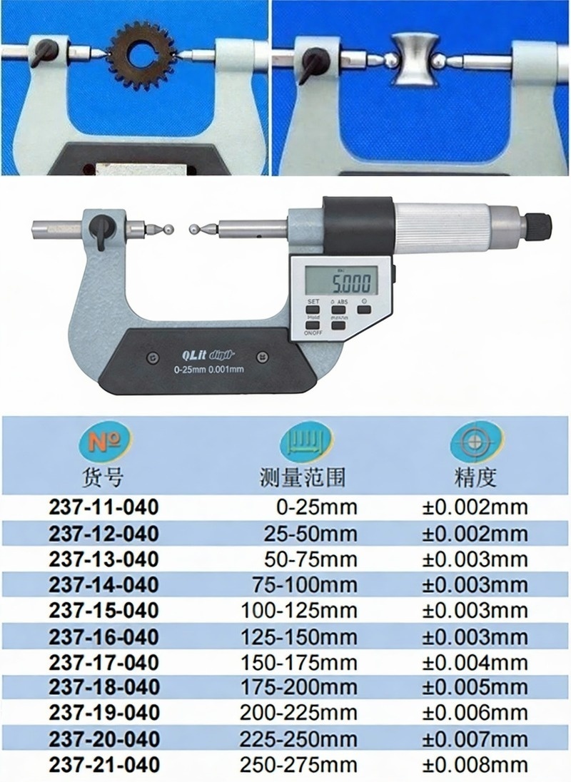 XIBEI(西北) 青量数显齿轮千分尺,237-13-040 50-75*0.001mm、不配测头、五键、IP54 售卖规格:1把