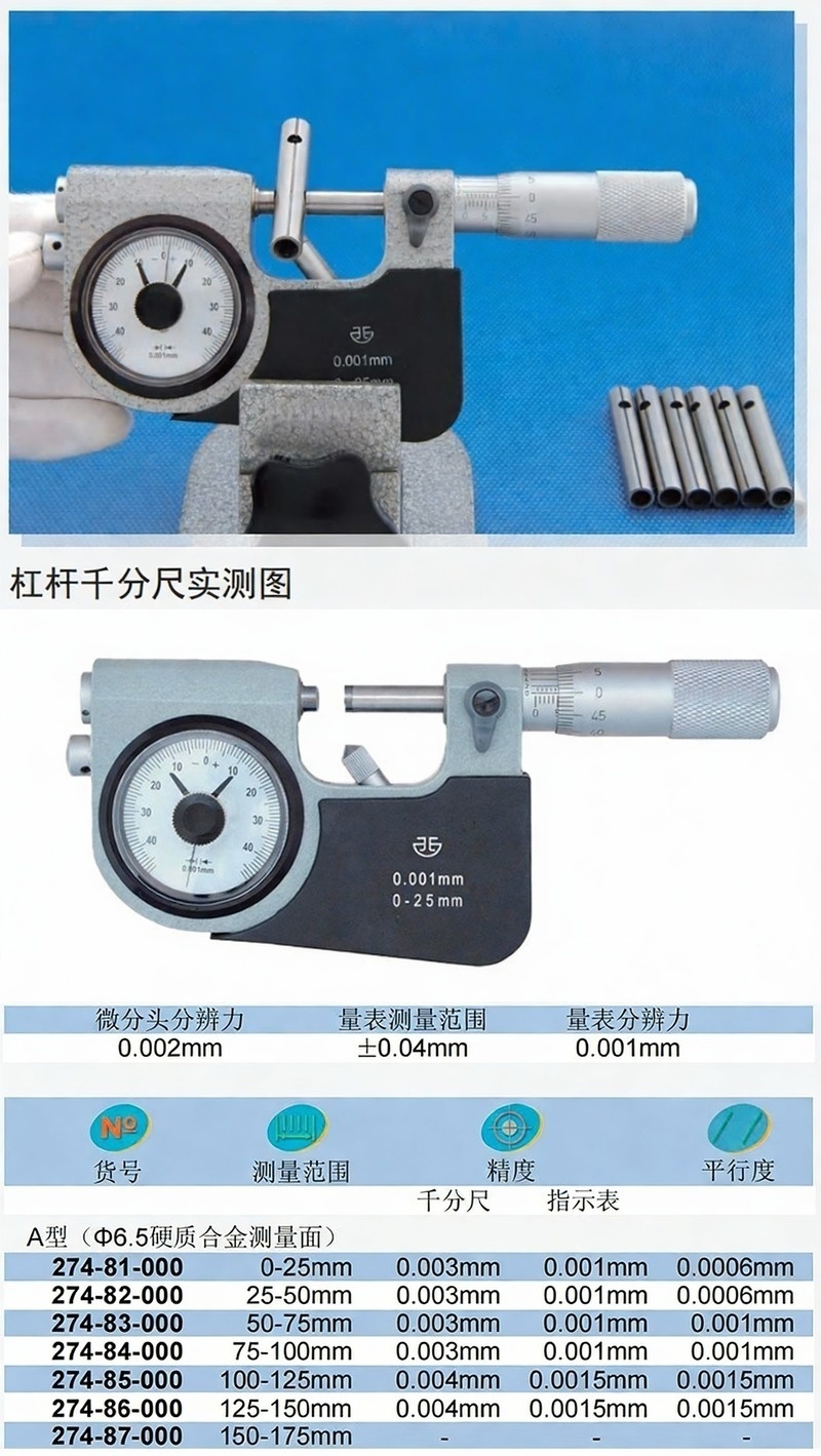 XIBEI(西北) 青量杠杆千分尺,274-85-000 100-125*0.001mm、硬质合金测量面 售卖规格:1把