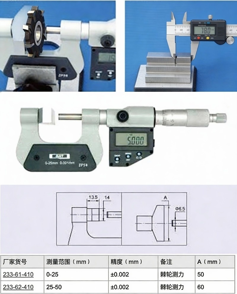 XIBEI(西北) 青量数显大测砧千分尺,233-61-010 0-25*0.001mm、50*14mm测砧、五键、IP54 售卖规格:1把