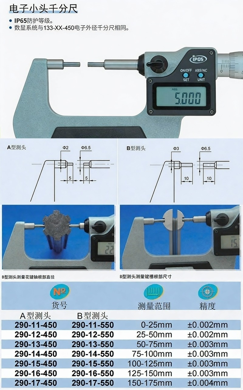 XIBEI(西北) 青量数显小头千分尺,290-11-450 0-25*0.01mm、A型(Φ2*5)、电子/刻度显示、IP65 售卖规格:1把