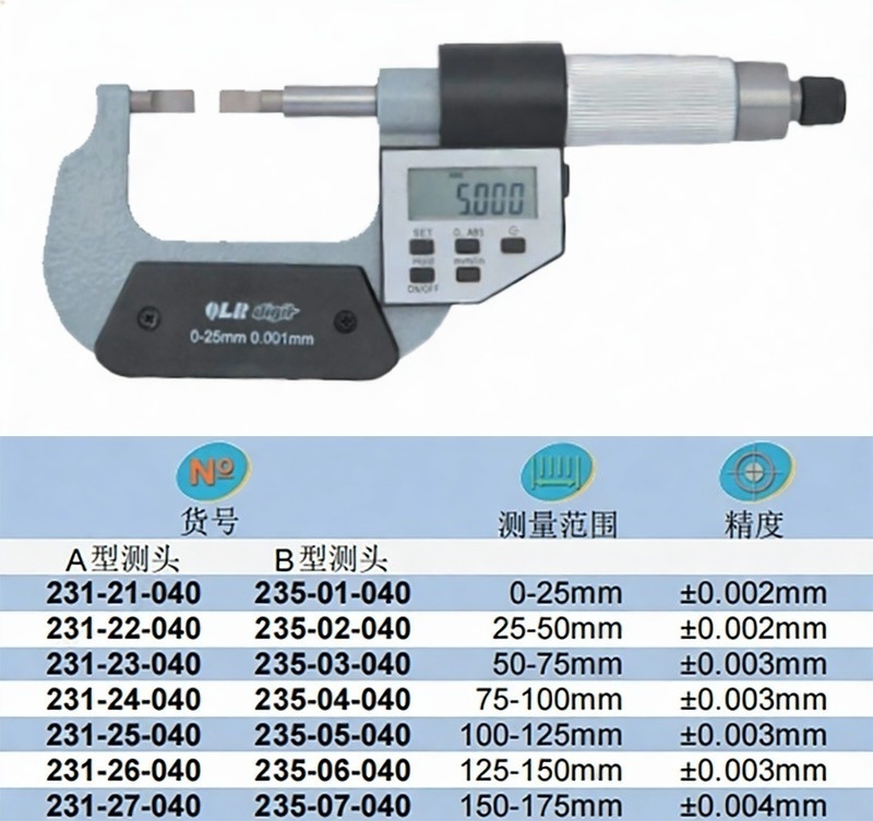XIBEI(西北) 青量数显叶片千分尺,235-02-040 25-50*0.001mm、B型(0.4*3.5*6)、五键、IP54 售卖规格:1把